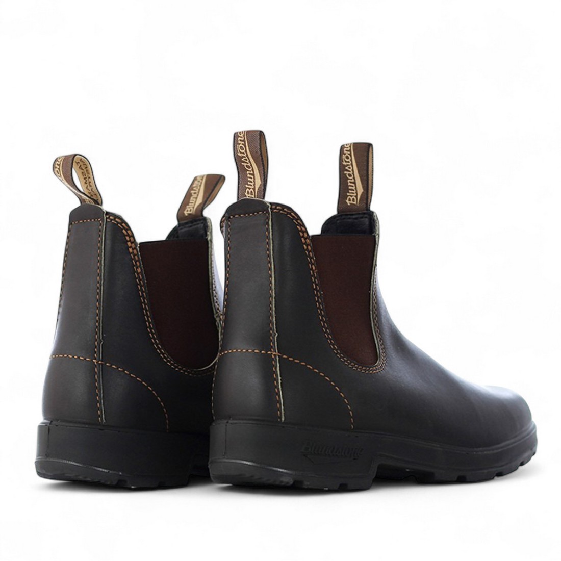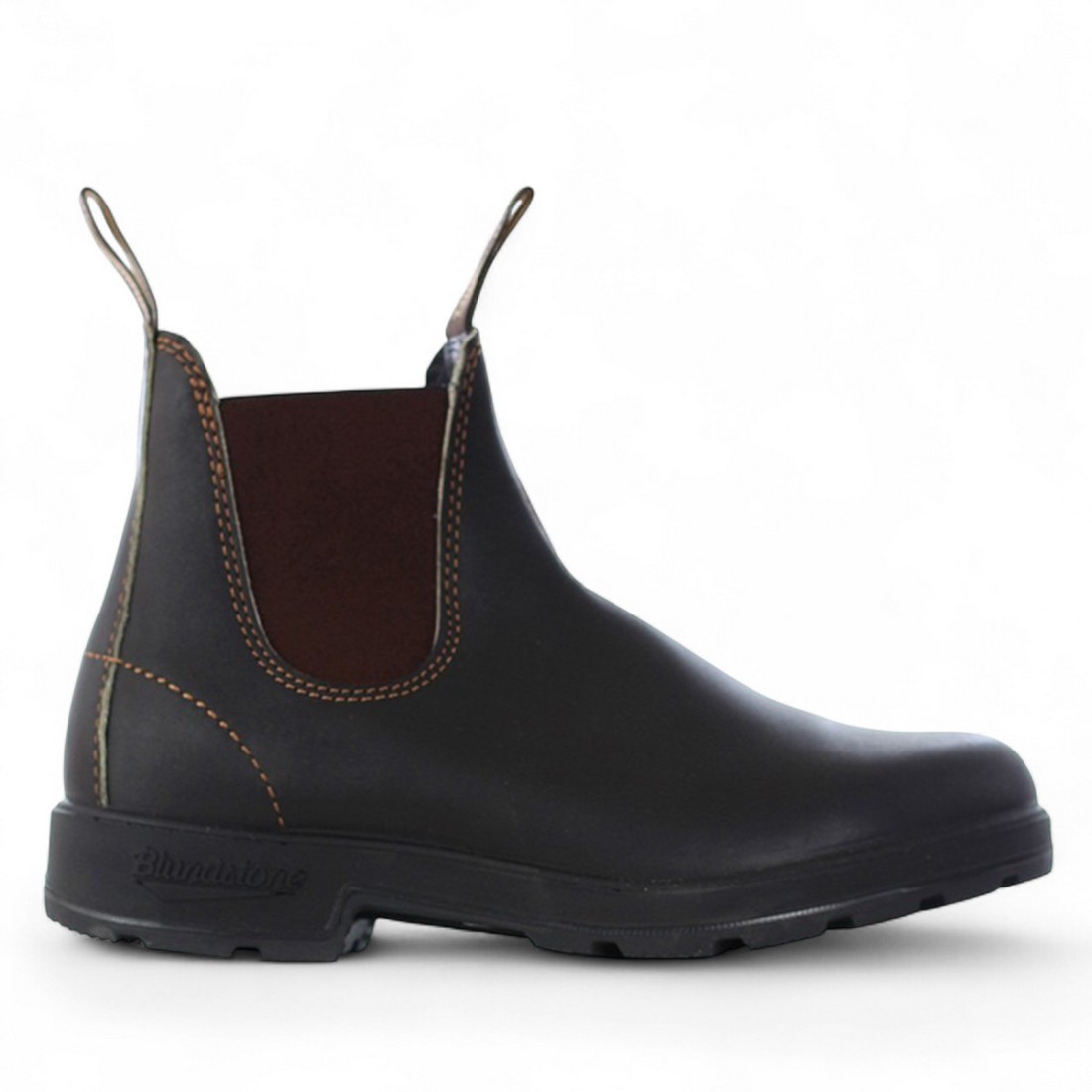 Botín icónico Blundstone #500 en estilo Chelsea, confeccionado en piel premium marrón resistente a la intemperie. Con elásticos laterales tono sobre tono, lengüetas para un ajuste fácil y suela de goma dentada con tacón elevado y logotipos para un agarre óptimo. Ligeras, cómodas y duraderas gracias al sistema SPS Max Comfort y a la entresuela acolchada. Un clásico atemporal de la serie Originals, perfecto para todos los días.