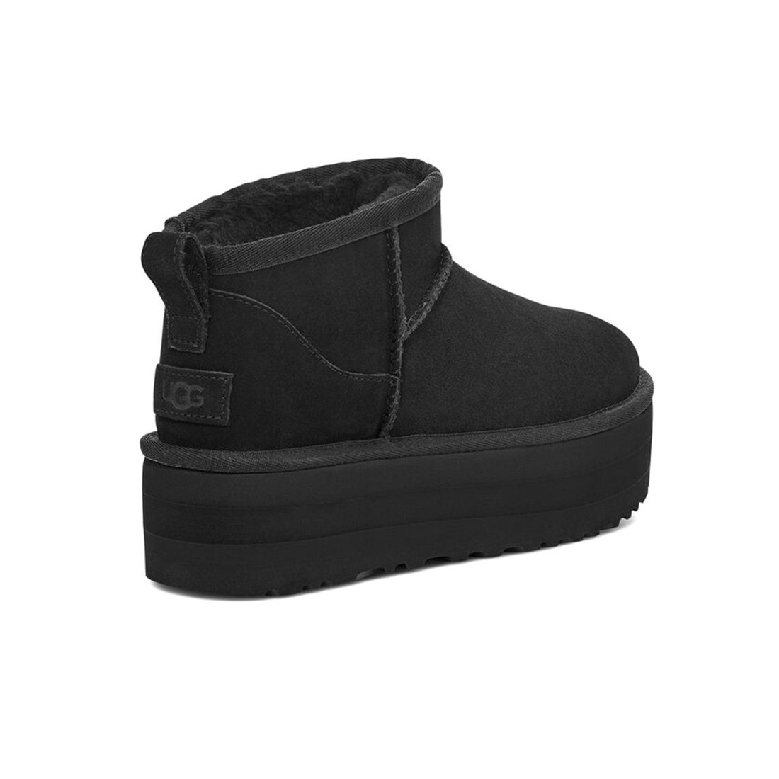 UGG - Botín de ante negro con forro y plantilla UGGplush™ de 80% lana regenerada y 20% lyocell. Suela de goma Treadlite by UGG™ con plataforma de 50 mm. Parche del logotipo "Ugg" cosido en la parte trasera. Art:1135092-BLK
