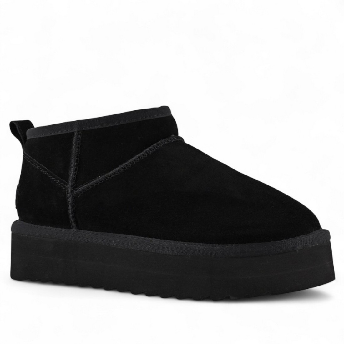 Perfectos para afrontar el frío con estilo, estos botines de ante con forro de mezcla de lana mantienen los pies calientes y ofrecen una comodidad excepcional gracias a la suela de plataforma. Con un diseño moderno y versátil, son ideales para un look casual chic. Corte normal, altura del tacón 4 cm, caña 7 cm.