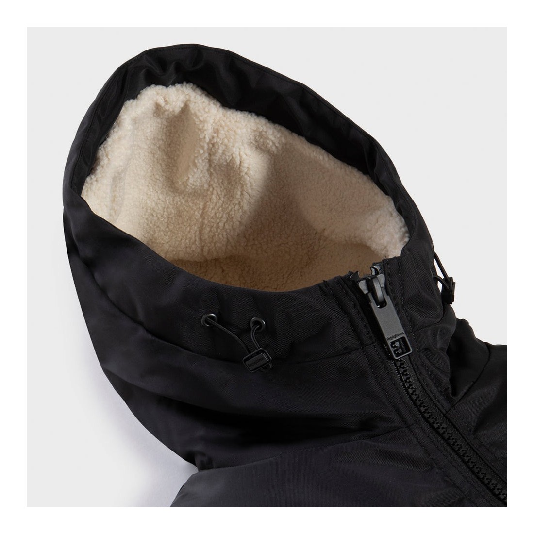 Chaqueta de invierno con capucha para hombre con un diseño limpio y atemporal. Confeccionada en nailon Oxford duradero y resistente al viento con un acabado mate y una textura nítida. El cálido forro de tejido Teddy garantiza comodidad y protección contra el frío. Corte ligeramente holgado, cierre con cremallera y botón a presión. Una prenda práctica y versátil, ideal para el invierno.