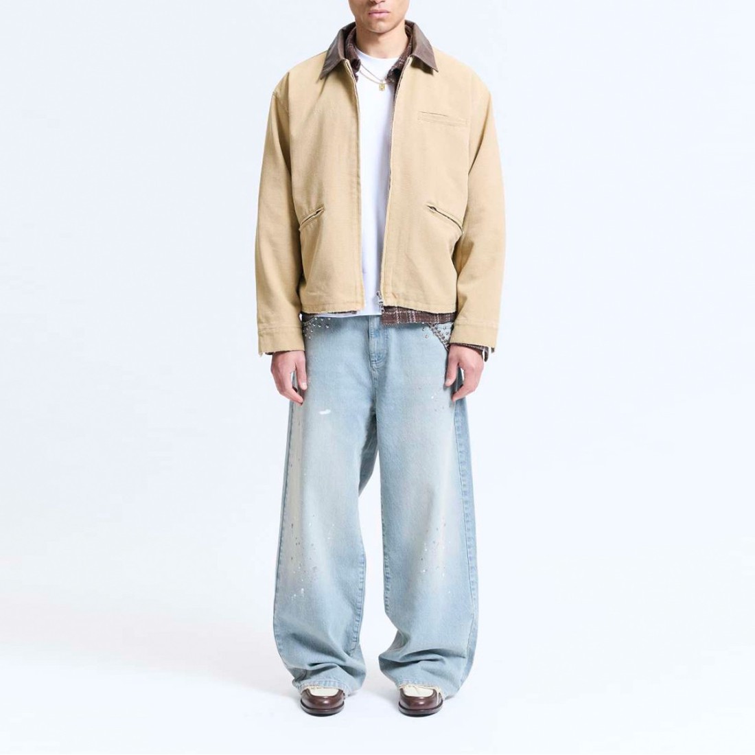 RETERNITY propone la chaqueta DESIGNED TO CREATE de algodón 100% color arena, con forro de PES y cuello de piel sintética marrón. Cierre de cremallera bidireccional y bolsillos, efecto destrozado en toda la superficie y bordado de cuerda en la espalda. Corte recto y corto, perfecto para un look urbano y contemporáneo, que combina un estilo atrevido y detalles artesanales.Nuestro servicio al cliente está disponible de lunes a sábado de 10:00 a 19:30