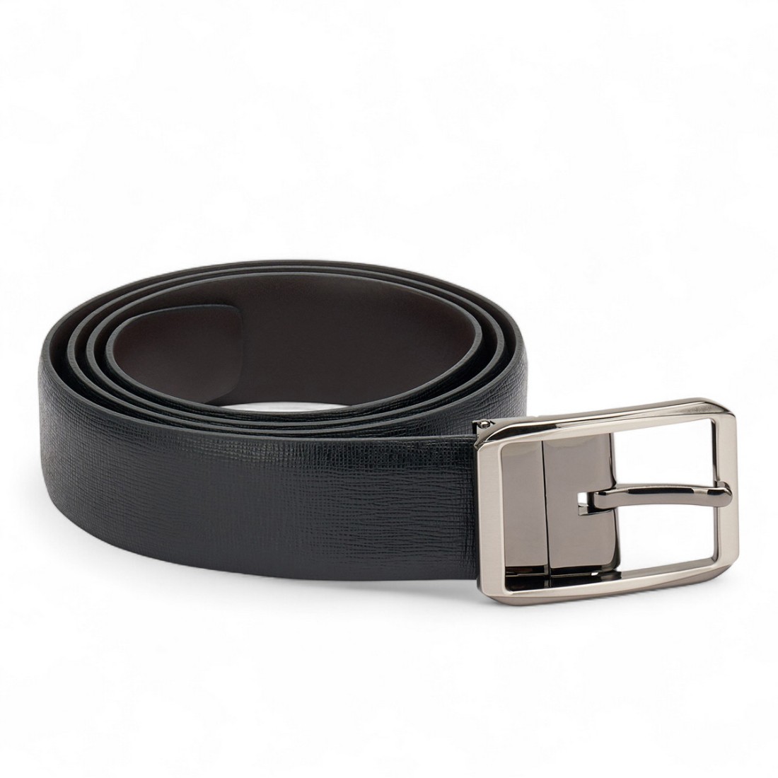 Un cinturón de doble cara con hebilla cuadrada, perfecto para el hombre moderno amante de la versatilidad. Por un lado elegante piel saffiano, por el otro suave piel lisa: cambia de estilo en un instante. Atención al detalle, calidad Made in Italy y diseño atemporal para un accesorio que combina funcionalidad y clase.Nuestro servicio al cliente está disponible de lunes a sábado de 10:00 a 19:30