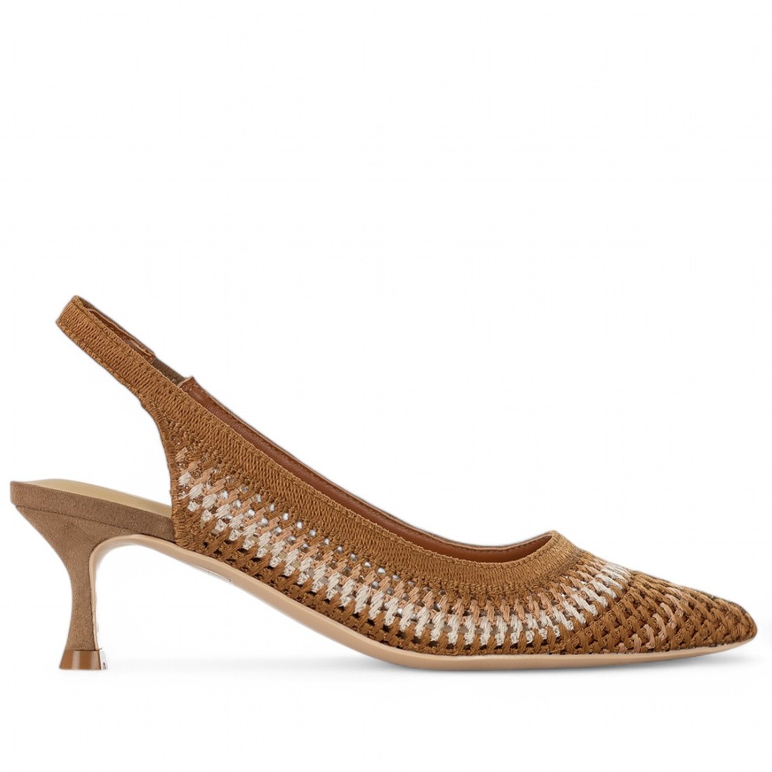 CHICONIC - Slingback en tejido real marrón con tira elástica, suela de goma y tacón de 60 mm. Perfectos para un look informal pero refinado.