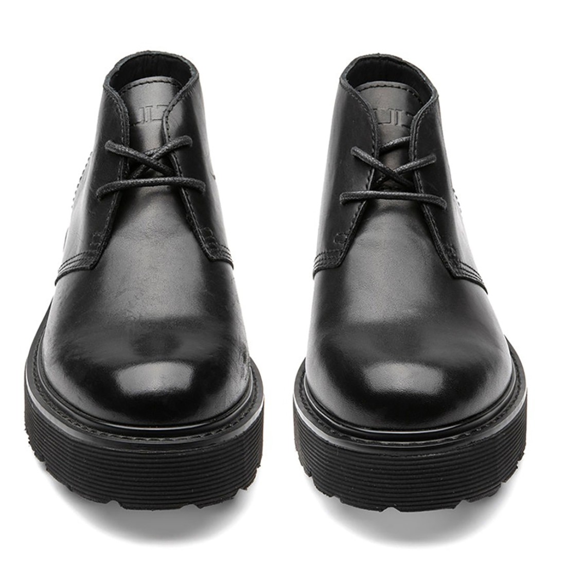 Los derbies de cuero negro de Cult combinan estilo y comodidad. La forma redondeada de la puntera, las costuras visibles y los ojales metálicos realzan el diseño, mientras que las gruesas suelas de EVA garantizan ligereza y durabilidad. Ideales para quienes buscan un look refinado sin renunciar a la practicidad, perfectos para combinar con conjuntos formales o informales.Nuestro servicio al cliente está disponible de lunes a sábado de 10:00 a 19:30