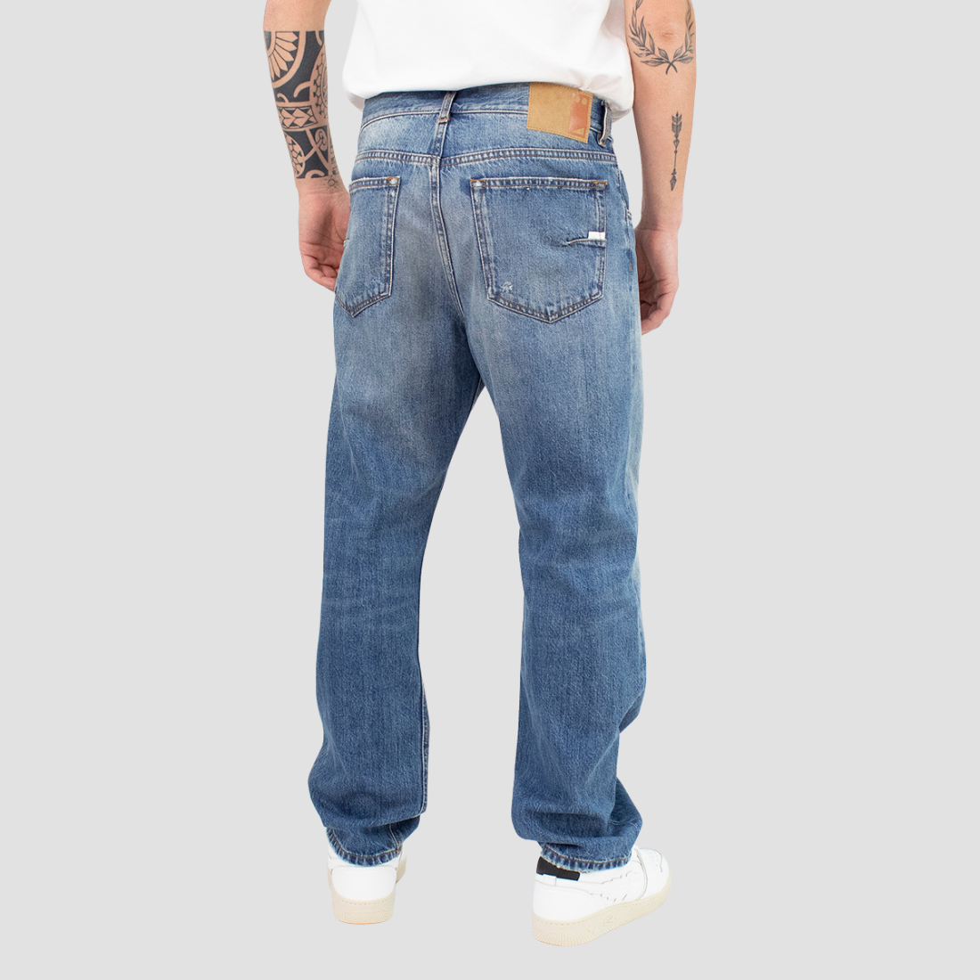 GRIFONI - Vaqueros en tejido vaquero 100% algodón azul con rotura en el bolsillo derecho y parche de cuero con el logotipo "Grifoni" en la parte trasera. Diseño de 5 bolsillos con cierre de botón y cremallera. Corte ancho y corto.Nuestro servicio al cliente está disponible de lunes a sábado de 10:00 a 19:30