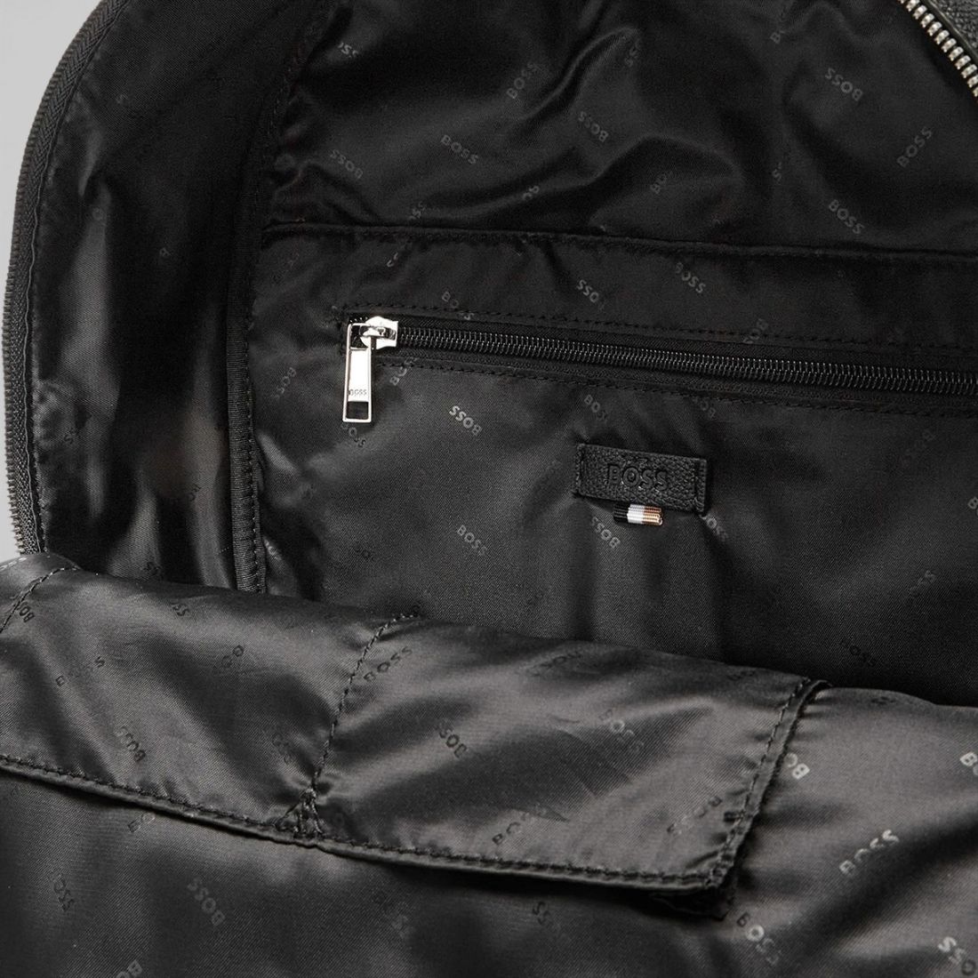 Mochila de BOSS en piel sintética negra, perfecta para un estilo sofisticado y sostenible gracias al uso de materiales reciclados. Equipada con un compartimento grande con cremallera, un bolsillo delantero con cremallera, dos bolsillos interiores con cremallera y un bolsillo con cremallera para una organización práctica. Los tirantes ajustables de tela y el acolchado de la espalda garantizan la comodidad. El asa corta ofrece un agarre fácil y seguro. Dimensiones 28x43x14 cm, ideal para cualquier ocasión.Nuestro servicio al cliente está disponible de lunes a sábado de 10:00 a 19:30