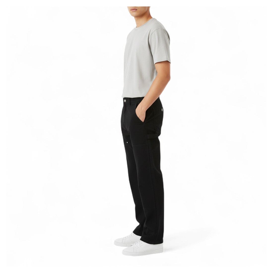 Pantalón negro de caballero MARKET con corte regular. Confeccionado íntegramente en suave algodón, ofrece comodidad y estilo para cualquier ocasión. Presenta funcionales bolsillos laterales y traseros, así como estéticos bolsillos delanteros y traseros, realzados por el estampado del logotipo en el bolsillo trasero derecho. Una prenda de carácter urbano y contemporáneo, ideal para un look casual y versátil.