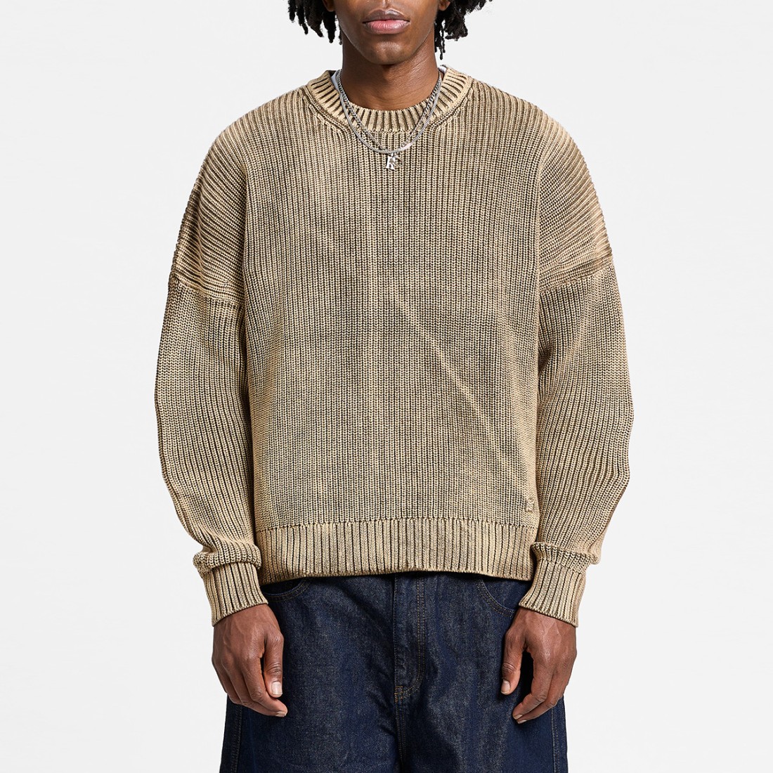 Essential Knit Sweater en marrón ácido con un diseño atemporal y un estilo refinado. Confeccionado en suave algodón 100% con acabado lavado al ácido, ofrece una textura única y un rico carácter. El corte relajado garantiza comodidad y versatilidad, mientras que el emblema metálico Signe en el dobladillo inferior añade un toque distintivo y elegante.