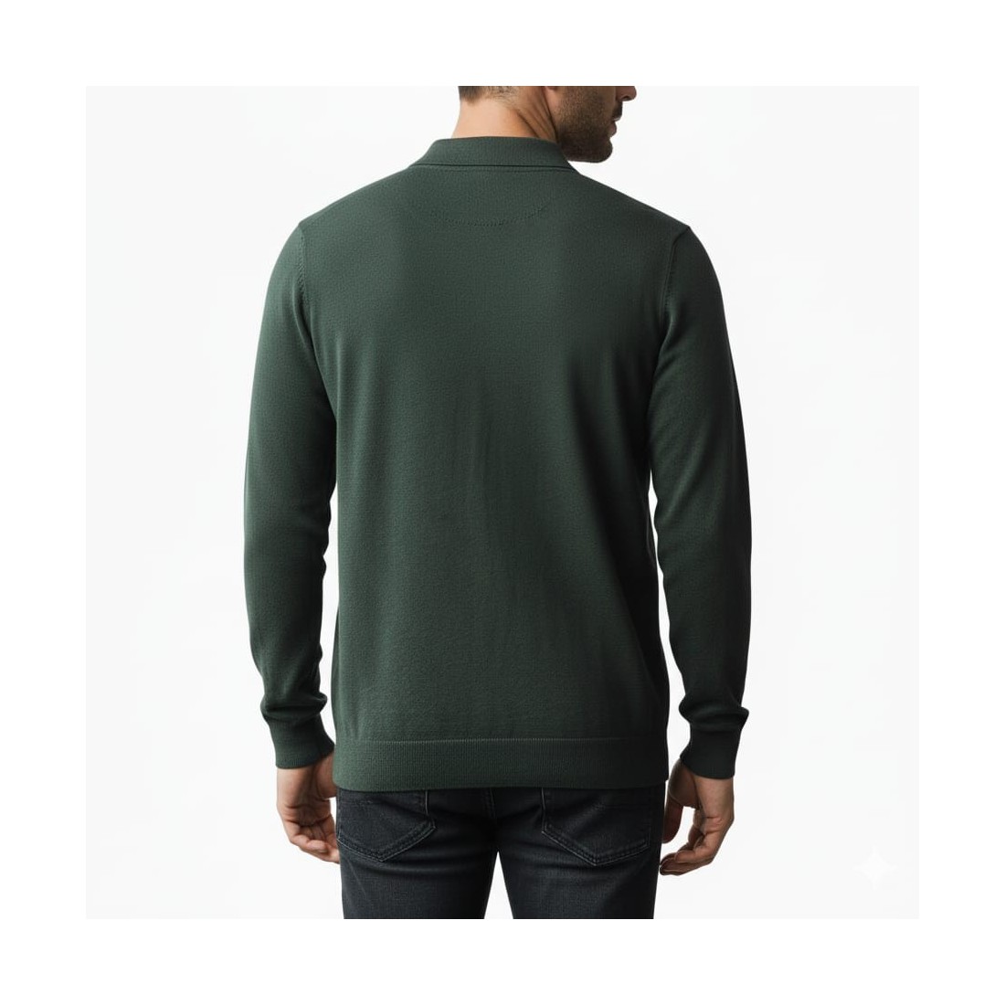 Polo de manga larga Bottega Cinque de mezcla de lana verde confeccionado con una combinación de poliéster, nailon, acrílico y lana merina fina. Presenta un cuello clásico de tres botones, puños y dobladillo elásticos para un ajuste cómodo. Ideal para un estilo elegante y relajado.