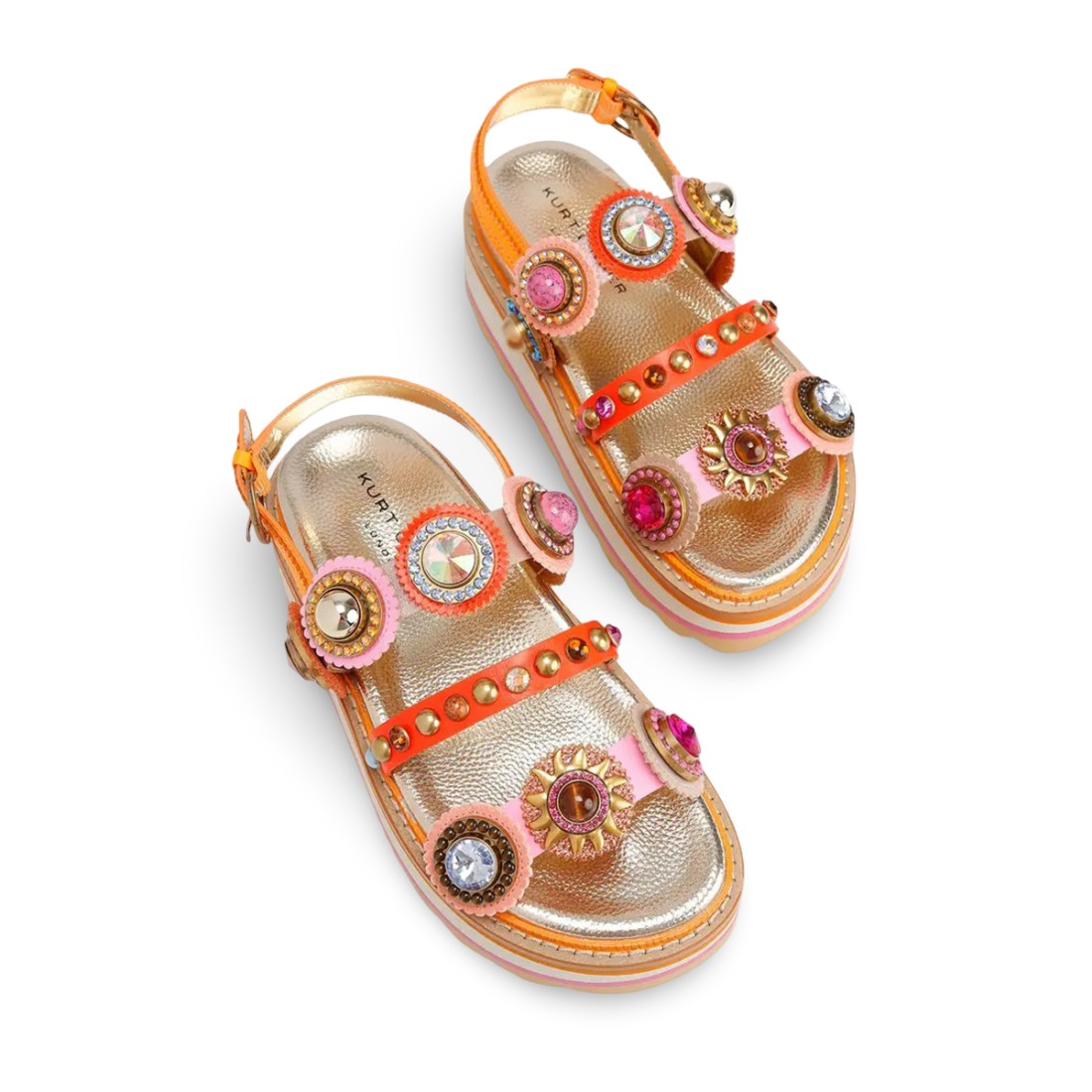 Sandalia Octavia Sling con plataforma presenta un llamativo empeine decorado con grandes cristales, piedras y detalles perforados en 3D. La suela de plataforma de 50 mm con banda de rodadura festoneada garantiza estabilidad y un toque distintivo. Fabricada en piel naranja, combina comodidad y estilo para completar cada look con personalidad.