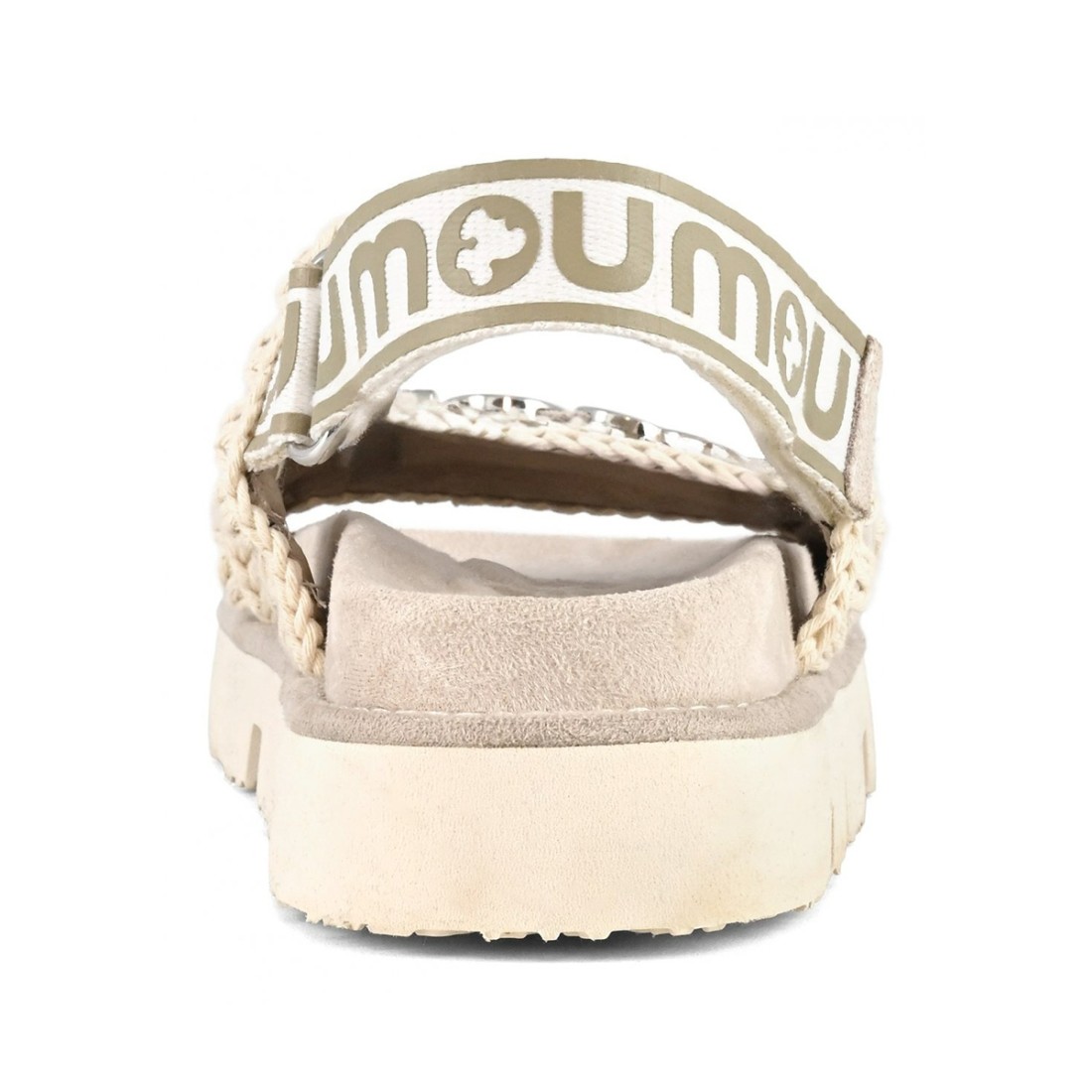 Descubre la sandalia MOU de doble tira en ante y lona de algodón blanco tiza, adornada con pespuntes artesanales de ganchillo y logotipo de letras metálicas en la pala. La práctica tira de velcro personalizada en la parte trasera garantiza un ajuste cómodo y regulable. La suela de goma ofrece comodidad y estabilidad para un look refinado y versátil. Perfecta para cualquier ocasión, combina estilo y calidad en un diseño único.Nuestro servicio al cliente está disponible de lunes a sábado de 10:00 a 19:30
