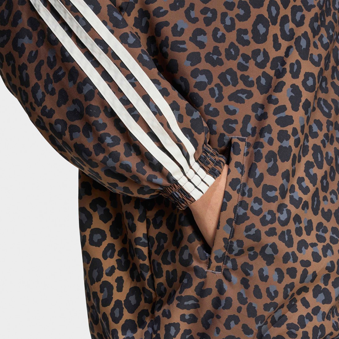 Esta chaqueta adidas oversize combina estilo y comodidad, ideal para los que quieren destacar. Confeccionada en poliéster 100% reciclado, ofrece la máxima libertad de movimiento gracias a su corte holgado. El estampado de leopardo añade un toque atrevido y moderno. Perfecta para combinar con pantalones a juego para un look completo y original, apto para quienes les gusta destacar con personalidad.