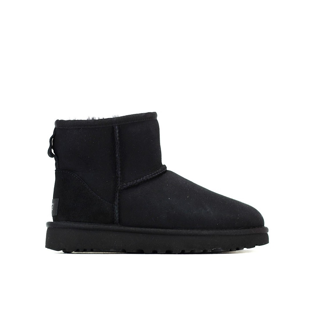 UGG - Mini botín clásico de ante negro con forro de suave borreguito y plantilla de borreguito. Parche con el logotipo "UGG" en la parte trasera y suela de goma Treadlite de UGG™. Artículo: 1016222-BLK