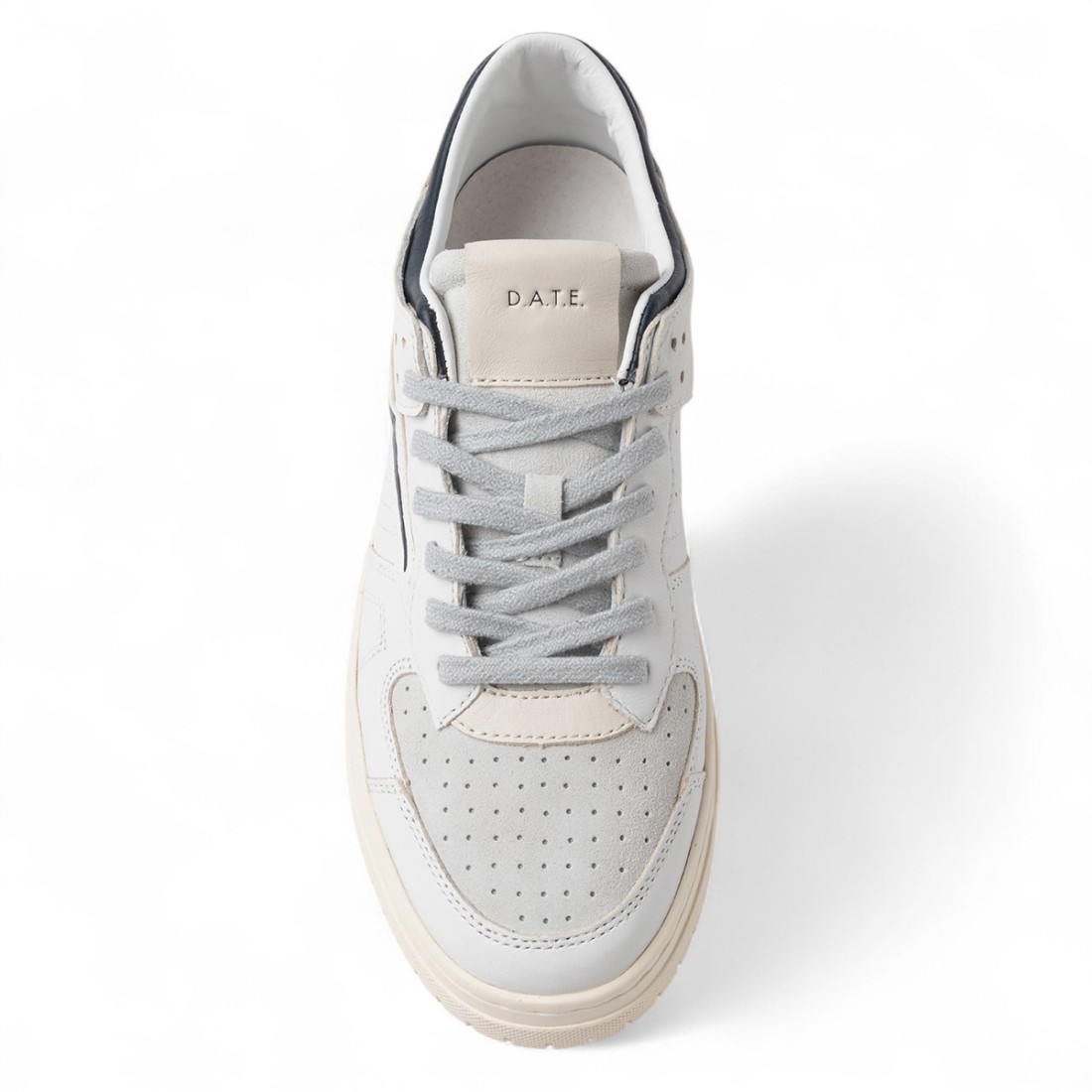 Zapatillas D.A.T.E. torneo de estilo moderno y artesanal, confeccionadas en piel Logic Fondo Crust Made in Italy, que adquiere con el uso un fascinante efecto desgastado que tiende al beige. Puntera perforada para una mejor transpiración, detalles azules en el cuello y en el lateral, logotipo D.A.T.E. en relieve. Forro de piel y rizo de algodón, plantilla elevada de 2,5 cm y suela de goma cosida (2,5-4 cm). Comodidad y calidad para un look urbano y auténtico. Corte normal.