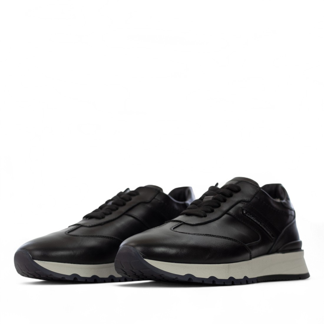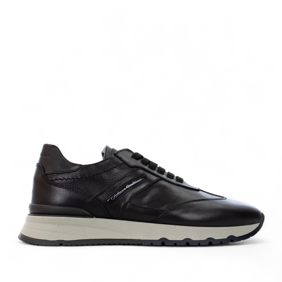 Zapatillas deportivas para hombre de Cristiano Gualtieri, fabricadas en piel de alta calidad. El forro y la plantilla de cuero garantizan comodidad y transpirabilidad, mientras que la suela de goma asegura agarre y durabilidad. Elegante diseño en negro, perfecto para un estilo casual refinado. Auténtico Made in Italy, sinónimo de artesanía y atención al detalle.