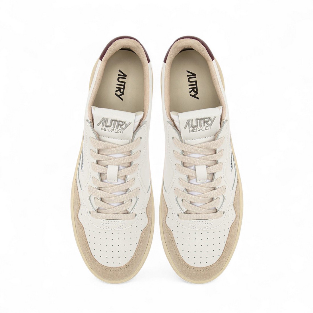 Renovadas en clave contemporánea, las zapatillas Medalist Autry combinan el estilo de tenis de los 80 con materiales de alta calidad. Confeccionadas en suave piel blanca con detalles de ante burdeos, ofrecen un look auténtico y atrevido. El talón de cuero negro con el logotipo Autry añade un toque distintivo. La comodidad está asegurada gracias al forro de piel y rizo de algodón, la plantilla elevada y la suela de goma duradera.Nuestro servicio al cliente está disponible de lunes a sábado de 10:00 a 19:30