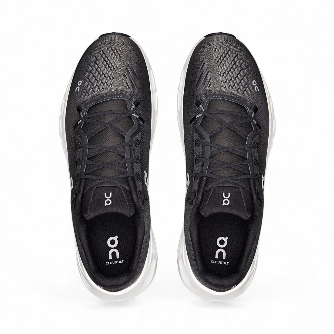 Zapatillas ON Cloudtilt en malla transpirable negra con detalles engomados plateados. Diseño ligero de 230 g con logotipo en el lateral y la lengüeta. Con amortiguación CloudTec® y tecnología Speedboard® para mayor comodidad, capacidad de respuesta y retorno de energía a cada paso. Suela de goma duradera ideal para el uso diario, que combina rendimiento avanzado y estilo contemporáneo.
