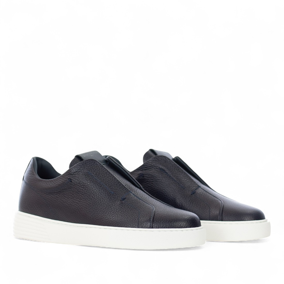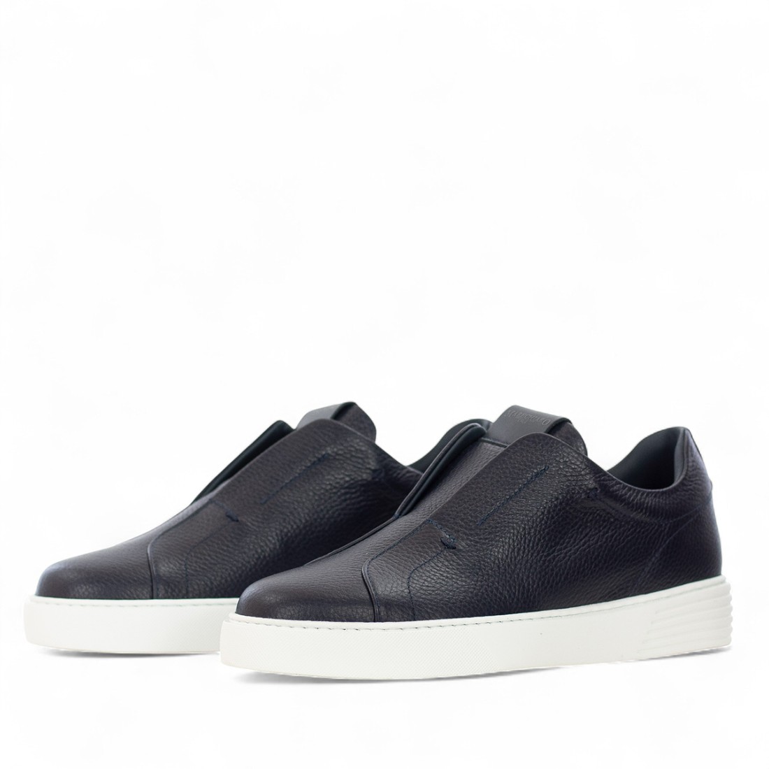 Zapatillas Marechiaro de piel azul martillada, con forro y plantilla de piel para el máximo confort. La suela de goma de 35 mm combina elegancia y practicidad, haciendo que el modelo sea refinado pero resistente. Perfectas para quien busca estilo y calidad en cada paso.