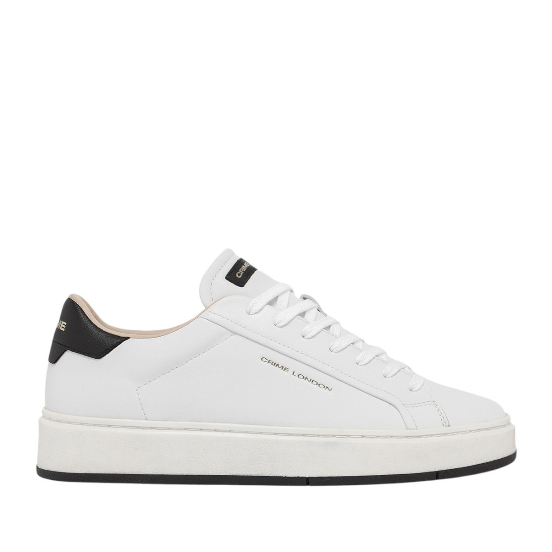 Zapatillas deportivas fabricadas con materiales de primera calidad Made in Italy. Parte superior de piel blanca con talón de piel negra y lengüeta de piel blanca. Cordones de algodón blanco. Forro de piel y tela. Suela de goma blanca con fondo negro de 2,5-3 cm de altura. Corte normal.