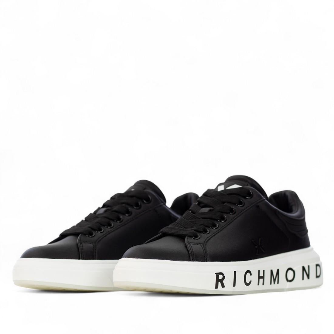 Zapatillas deportivas de cuero negro de Richmond, con un diseño moderno y refinado. Confeccionadas con un empeine y un forro de piel para mayor comodidad y transpirabilidad, incorporan una plantilla fija forrada de piel y una suela de goma duradera. Detalles distintivos como la lengüeta y la parte inferior con el logotipo, junto con la inserción trasera de goma tono sobre tono con el logotipo en relieve, completan un estilo elegante y contemporáneo.Nuestro servicio al cliente está disponible de lunes a sábado de 10:00 a 19:30