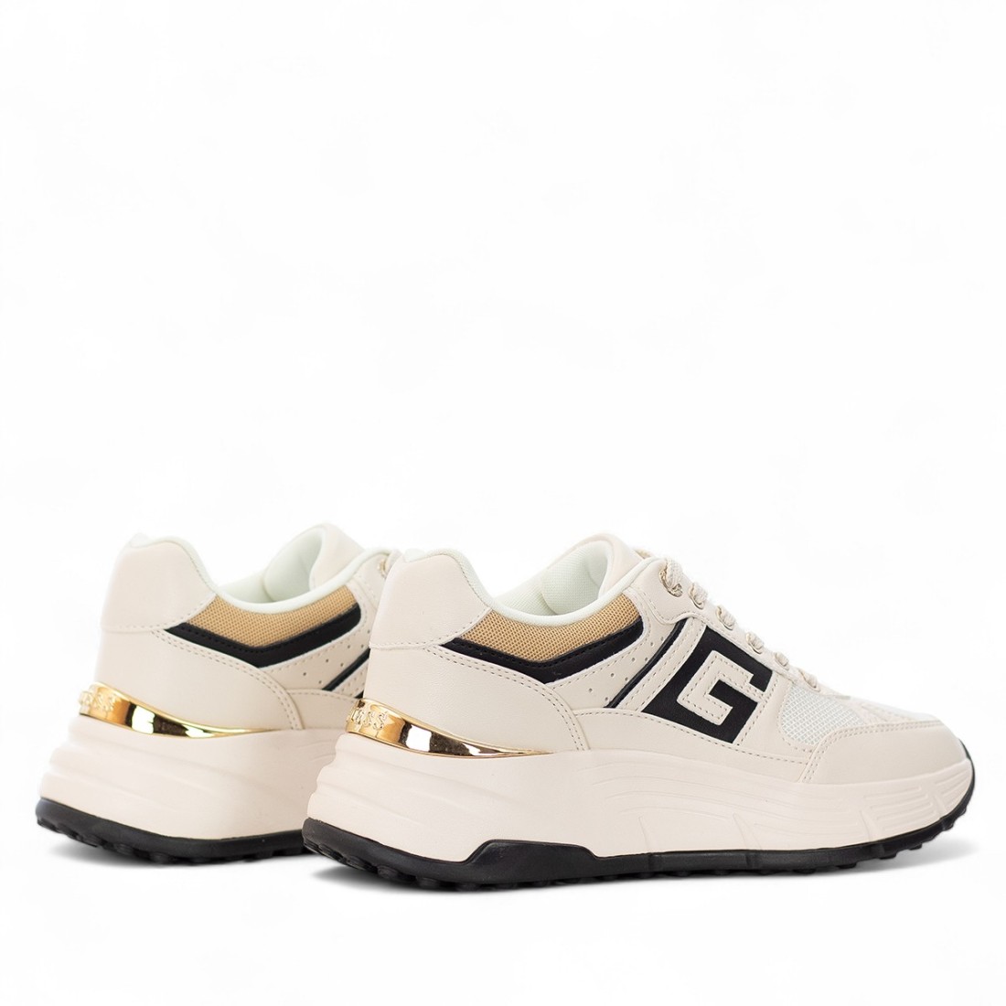 Zapatillas Guess de piel sintética color crema con refinados detalles de tela en el empeine. El forro textil y la plantilla garantizan comodidad y transpirabilidad. En la parte trasera, un elegante detalle de logotipo dorado añade un toque distintivo. La suela de goma, de unos 50 mm de altura, garantiza estabilidad y un estilo moderno y versátil, perfecto para completar looks informales o más sofisticados.Nuestro servicio al cliente está disponible de lunes a sábado de 10:00 a 19:30