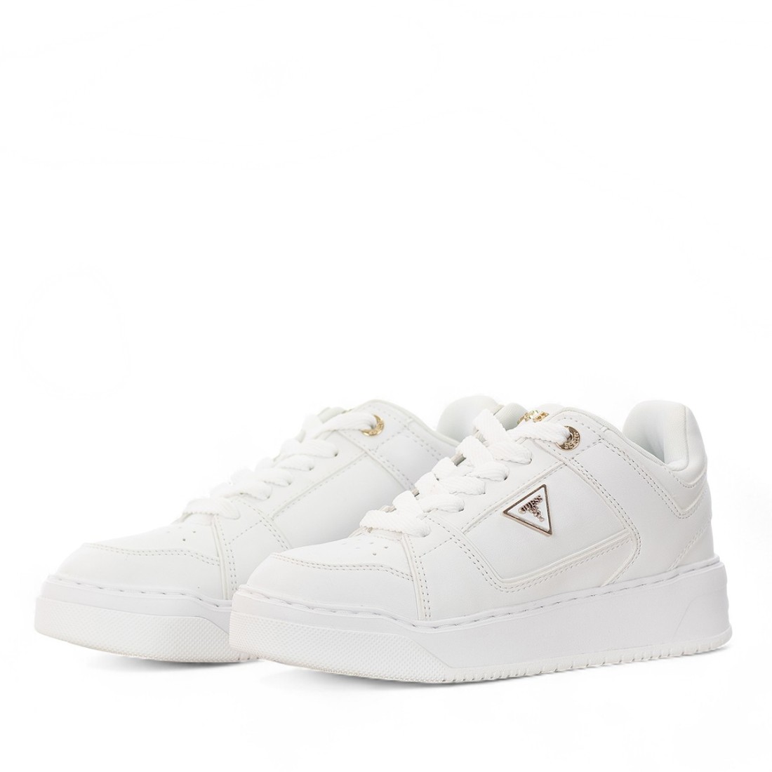 Zapatillas Guess de piel sintética con forro y plantilla de tela, adornadas con un logotipo dorado en relieve en la lengüeta y el empeine. El moderno diseño se combina con una suela de goma de 3,5 cm de altura, que garantiza comodidad y estilo para cualquier ocasión. Perfectas para un look informal pero refinado.Nuestro servicio al cliente está disponible de lunes a sábado de 10:00 a 19:30