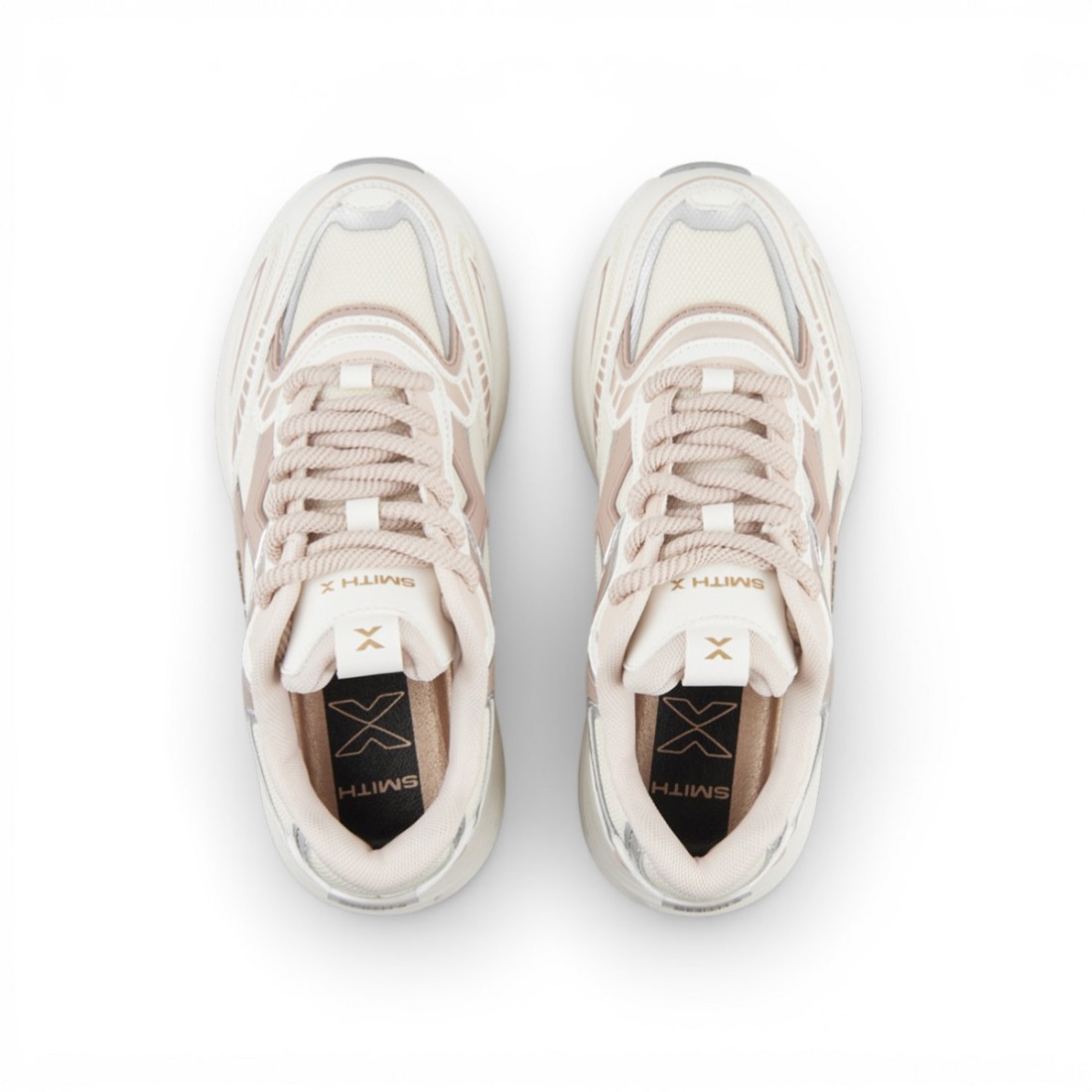 Diseñadas para quienes están siempre en movimiento, las zapatillas STORM combinan estilo contemporáneo y comodidad. La silueta dinámica se ve realzada por la suela ultraligera de running oversize que estiliza la figura y acompaña cada paso. Parte superior de piel blanca y tejido técnico con detalles de piel nude y laminado plateado, logotipo en el lateral y la parte trasera. Suela alta de 40 mm con plantilla de 10 mm para una sujeción más cómoda durante todo el día.Nuestro servicio al cliente está disponible de lunes a sábado de 10:00 a 19:30
