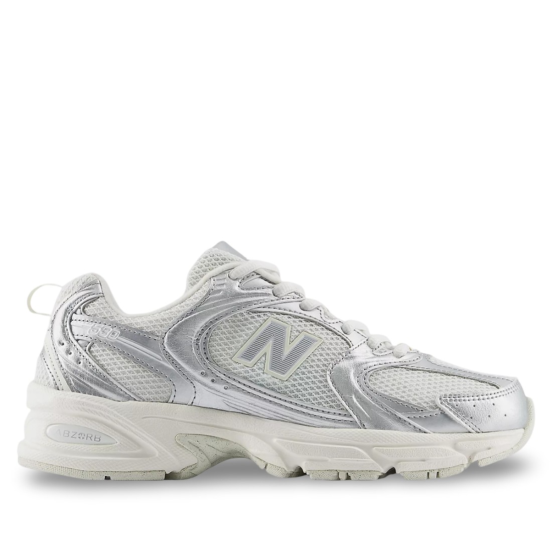 Descubre las zapatillas 530 de New Balance en malla blanca con inserciones de piel laminada plateada. Diseño icónico con logotipo en el lateral, la lengüeta y la parte trasera. Comodidad y amortiguación superiores gracias a las tecnologías 'N-ergy' y 'ABZORB SBS'. Suela de goma duradera para una sujeción máxima. Perfectas para un estilo deportivo y dinámico.Nuestro servicio al cliente está disponible de lunes a sábado de 10:00 a 19:30