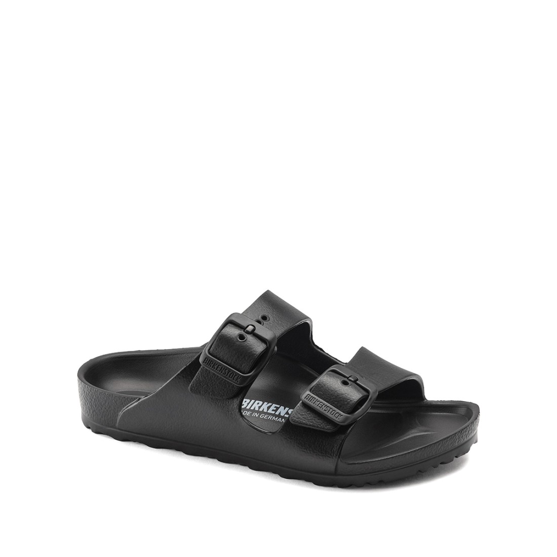 BIRKENSTOCK - Zapato unisex para niño de goma EVA negra con doble tira con hebillas con logotipo en el empeine. Plantilla y fondo de goma EVA.