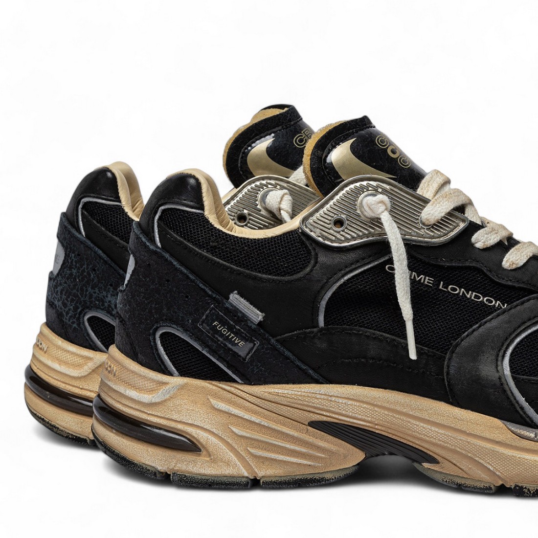 Chaussure de sport fabriquée en Italie avec un design exclusif et des matériaux de première qualité. La tige en tissu technique noir est associée à des empiècements en daim ton sur ton et à des détails argentés contrastés. Le logo embossé sur la languette ajoute une touche distinctive, tandis que la semelle en caoutchouc assure confort et durabilité. Parfaites pour ceux qui recherchent le style et la qualité dans une seule chaussure.Notre service client est disponible du lundi au samedi de 10h00 à 19h30
