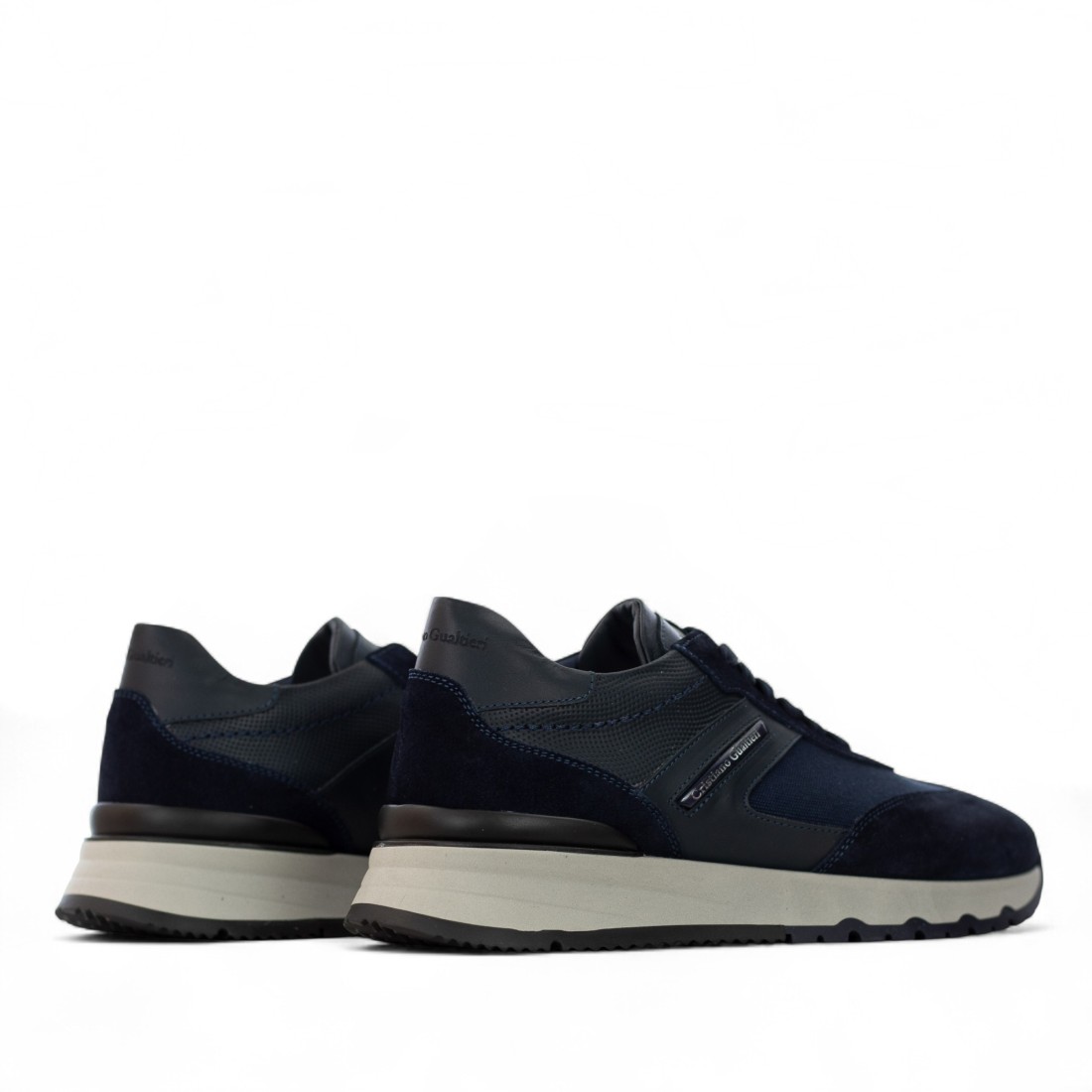 Baskets pour hommes de Cristiano Gualtieri, fabriquées en daim de haute qualité et en cuir lisse. La doublure et la semelle intérieure en cuir garantissent confort et respirabilité, tandis que la semelle en caoutchouc assure adhérence et durabilité. Design élégant dans une teinte bleue, parfait pour un style décontracté et raffiné. Authentiquement Made in Italy, synonyme d'artisanat et d'attention aux détails.Notre service client est disponible du lundi au samedi de 10h00 à 19h30