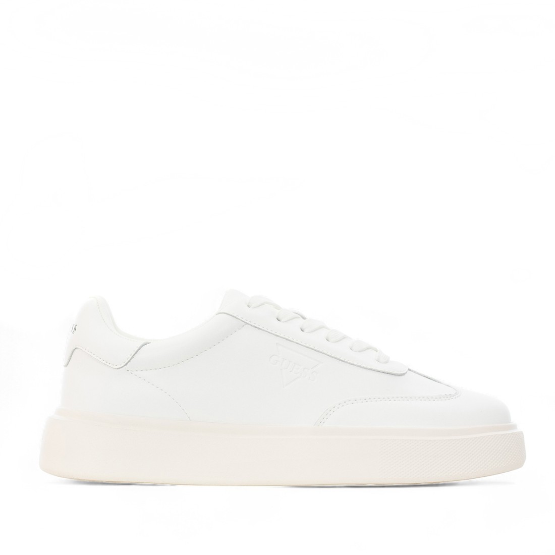 Baskets pour hommes Guess en cuir blanc et faux cuir, avec doublure et semelle intérieure en tissu pour un confort optimal. La semelle en caoutchouc de 40 mm garantit stabilité et style, tandis que le logo embossé sur la tige ajoute une touche distinctive. Parfaites pour un look décontracté mais soigné, adaptées à toutes les occasions.Notre service client est disponible du lundi au samedi de 10h00 à 19h30