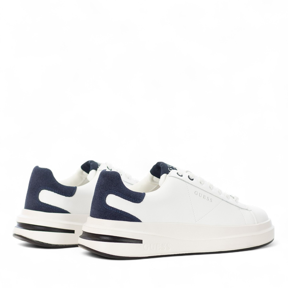 Baskets Guess pour homme en cuir blanc avec détails en daim bleu à l'arrière. Doublure et semelle intérieure en tissu et faux cuir pour un maximum de confort. Semelle en caoutchouc avec une hauteur de 45 mm, parfaite pour un style décontracté et moderne, alliant design et praticité à chaque pas.Notre service client est disponible du lundi au samedi de 10h00 à 19h30