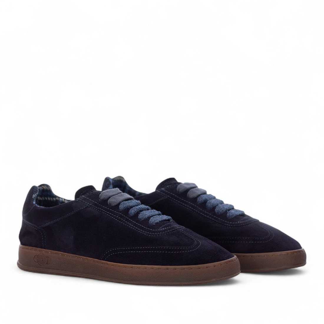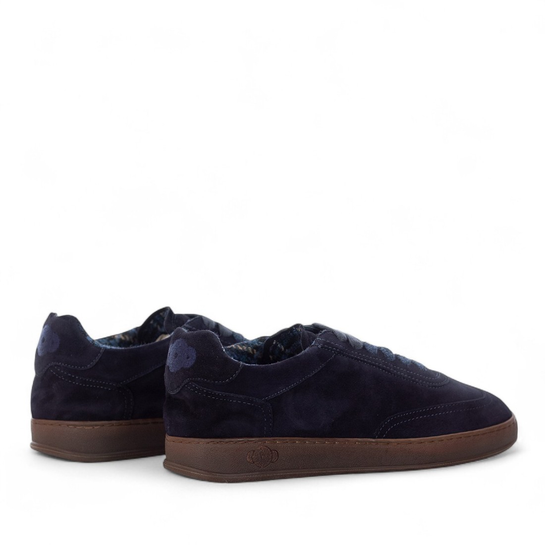 Baskets SOLDINI 80 pour homme en daim bleu souple, avec une semelle en caoutchouc de 25 mm pour un confort optimal. Le logo brodé ton sur ton à l'arrière rehausse la tige de son design épuré. Elles sont dotées de lacets interchangeables, d'une doublure en tissu respirant et d'une semelle en cuir qui garantit élégance et qualité de fabrication.