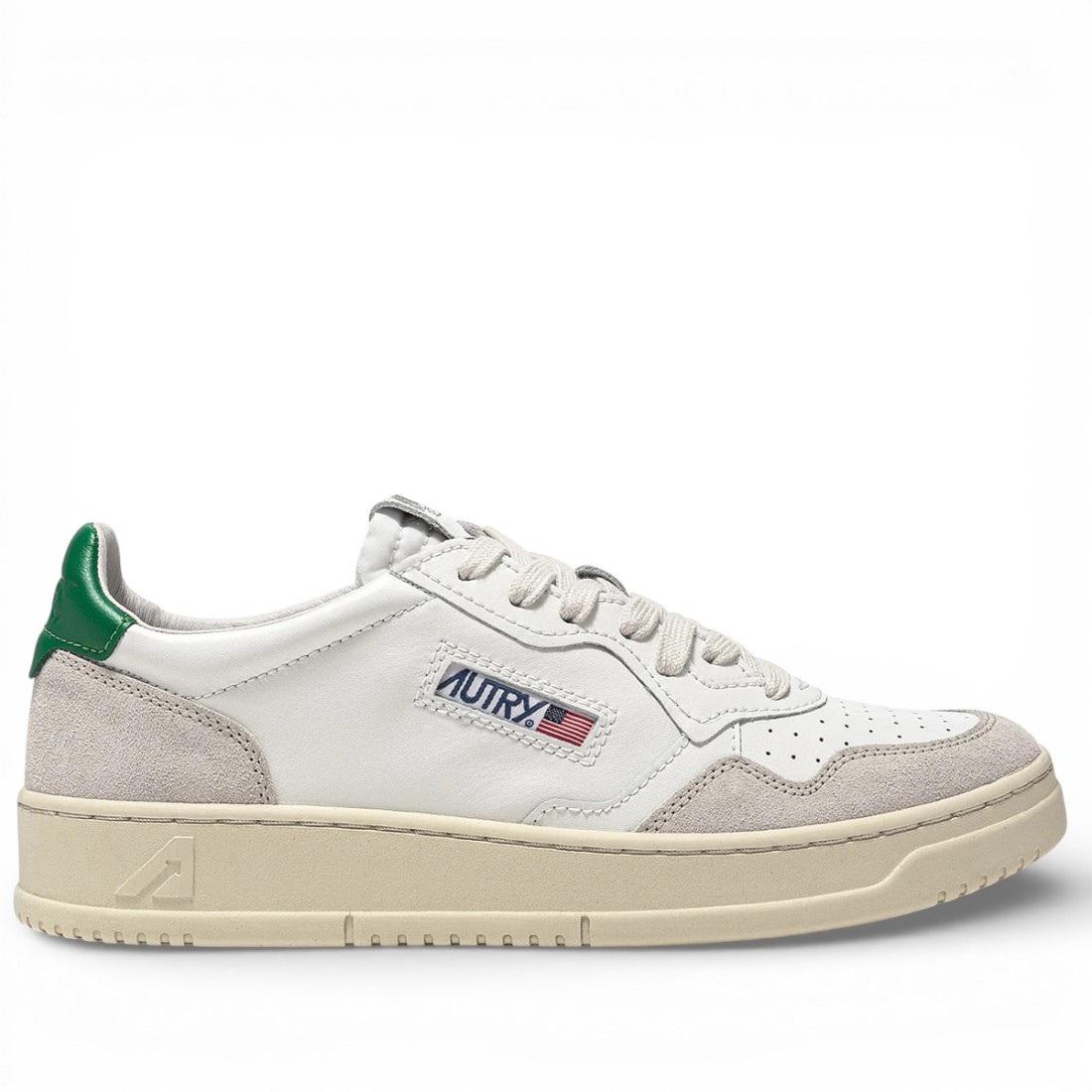 Inspirée par le tennis des années 1980, la Autry Medalist Low allie l'âme du patrimoine au style contemporain. Cette chaussure de sport en cuir blanc avec empiècements en daim beige et talon en cuir vert est polyvalente et intemporelle, parfaite pour tous les jours. Les détails verts sur le talon avec le logo Autry signent un design essentiel, tandis que la semelle en caoutchouc assure confort et praticité à chaque pas.Notre service client est disponible du lundi au samedi de 10h00 à 19h30