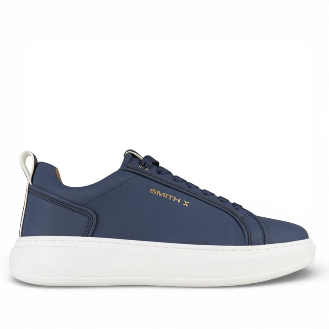 SMITH X - Sneakers Stone est une chaussure de sport au design épuré et contemporain, conçue pour ceux qui aiment un style à la fois urbain et raffiné. Réalisée en cuir bleu, elle présente le logo latéral qui souligne son caractère distinctif. La semelle de 40 mm garantit présence et confort, tandis que la semelle intérieure de 10 mm assure un maintien agréable tout au long de la journée. Un modèle unisexe polyvalent, facile à assortir en toute saison.