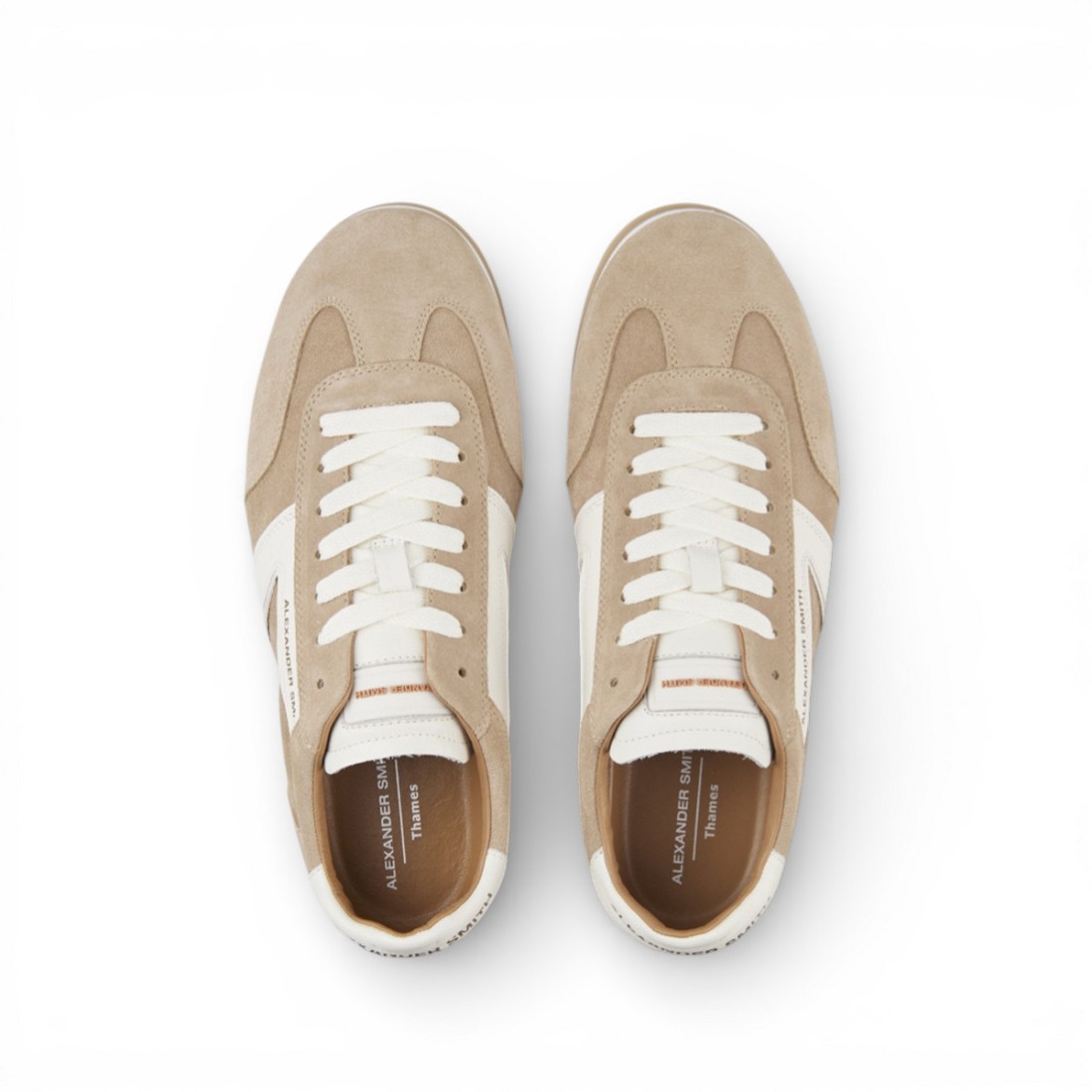 Alexander Smith Thames allie style et confort sans compromis. Le design minimaliste de la chaussure de sport est rendu unique par la construction légère Stitch & Turn, qui garantit un ajustement souple et flexible. Une tige en daim beige avec des détails en cuir blanc, un logo distinctif, une semelle intérieure amovible et une semelle extérieure de 25 mm complètent un modèle élégant et polyvalent, parfait pour toutes les occasions.Notre service client est disponible du lundi au samedi de 10h00 à 19h30