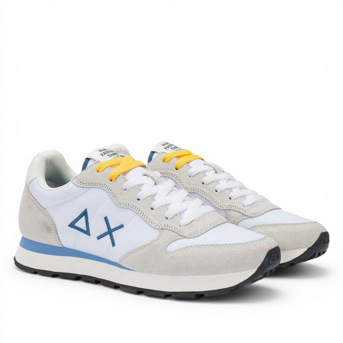 Tom est la chaussure de course à pied de SUN68 qui allie style et confort pour toutes les occasions. Fabriquée en nylon et daim blanc avec un empiècement arrière en faux cuir, elle est dotée de lacets en coton, d'un logo brodé sur le côté et d'une doublure en micro-maille respirante. La semelle en EVA fraisée à la main et dotée d'une bande de roulement en caoutchouc assure légèreté et adhérence, parfaite pour le bureau comme pour les loisirs.Notre service client est disponible du lundi au samedi de 10h00 à 19h30