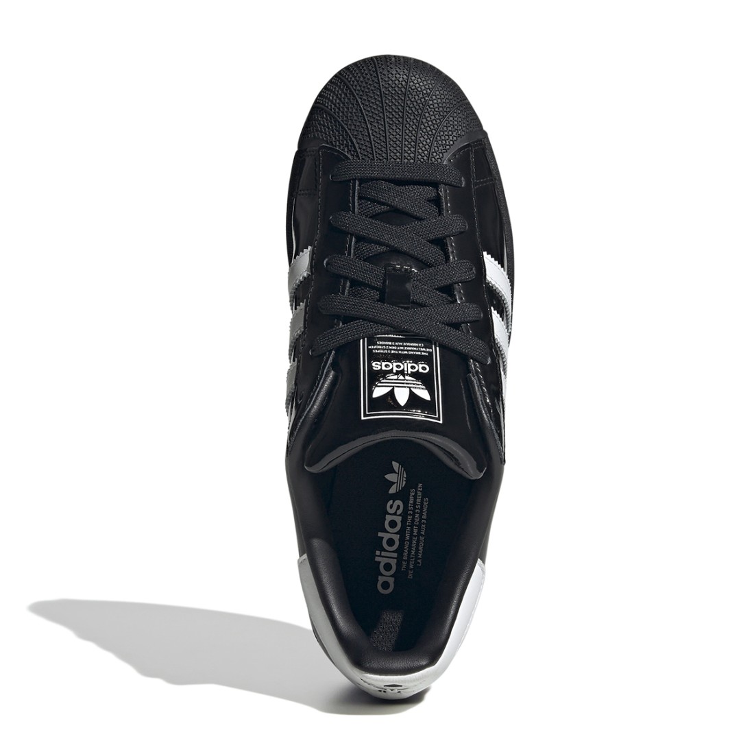 La Superstar d'adidas allie tradition et modernité grâce à son design intemporel. La tige en cuir verni et en tissu offre confort et durabilité, tandis que la semelle en caoutchouc garantit adhérence et praticité pour un usage quotidien. Le bout emblématique en forme de coquille et la fermeture à lacets font de ces baskets un must-have à l'attrait authentique, parfait pour tous les looks décontractés et urbains.