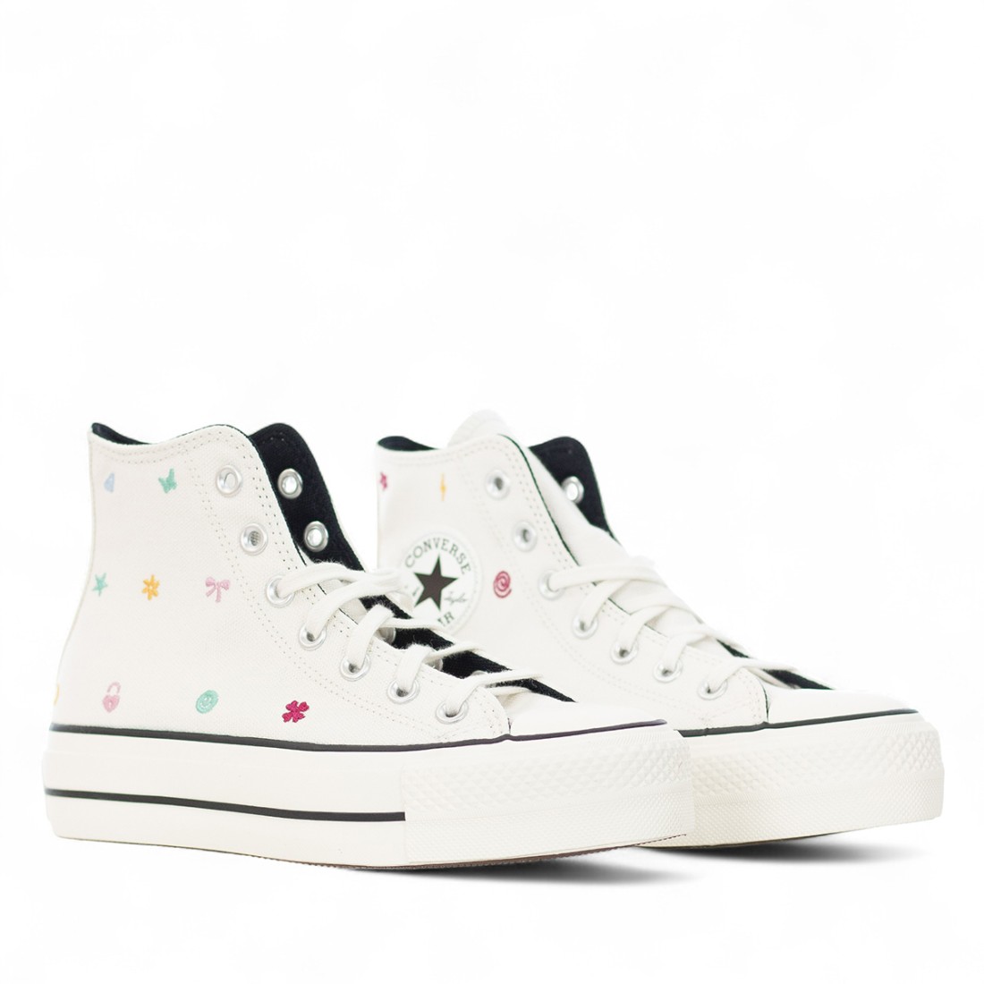 Baskets Converse en tissu beige avec doublure et semelle intérieure en tissu. La semelle en caoutchouc de 55 mm de haut garantit stabilité et confort tout au long de la journée. Détails avec motifs brodés multicolores sur la tige. Une chaussure polyvalente au design intemporel, parfaite pour accompagner chaque look avec style, aussi bien au travail que pendant les loisirs.Notre service client est disponible du lundi au samedi de 10h00 à 19h30