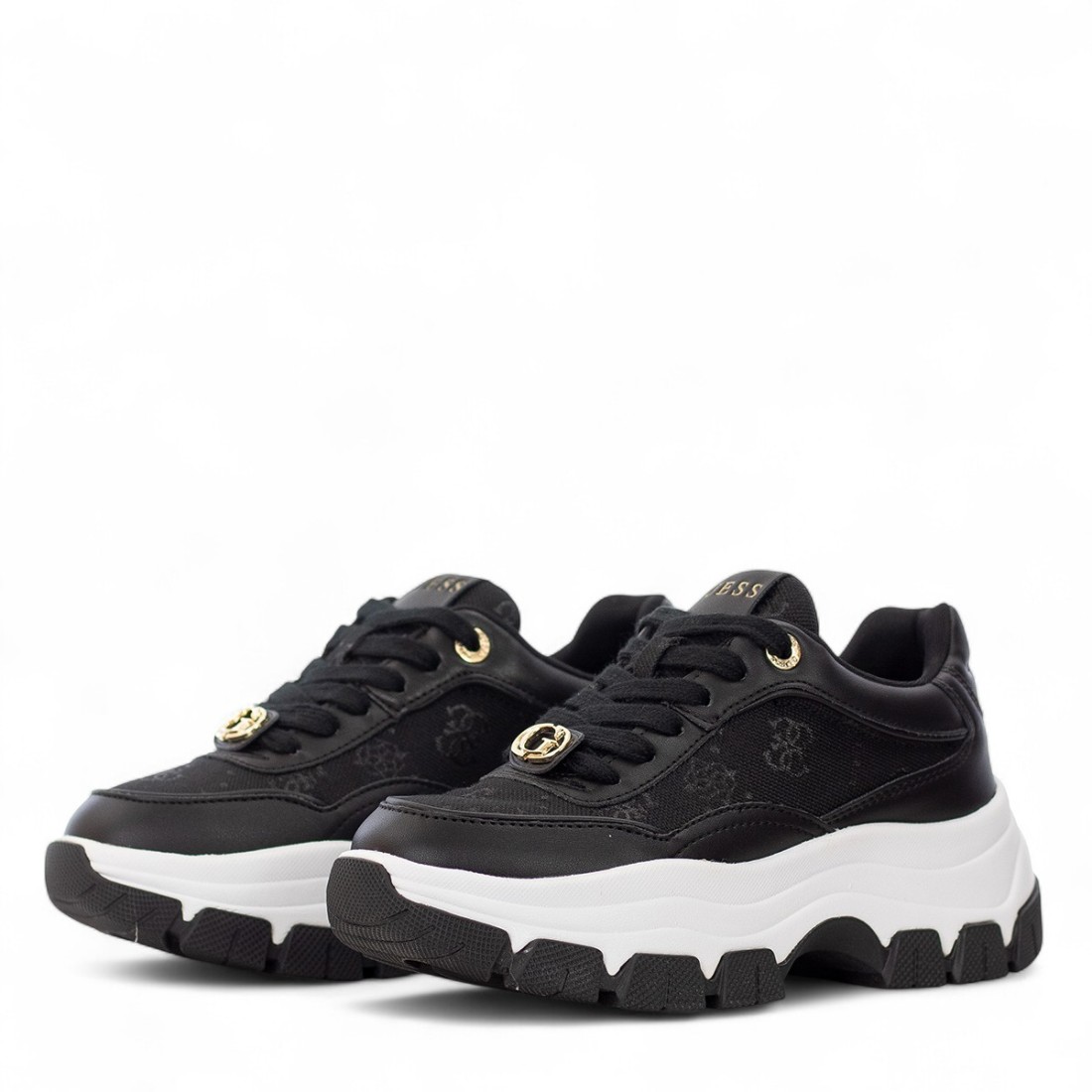 Chaussure en simili-cuir au design moderne et sportif. Bout rond et para de 7,3 cm de haut pour un grand confort. Fermeture à lacets. Détails iconiques : lettre 4G et logo pivoine, logo avant et arrière, triangle logo sur la semelle. Tige 68% polyuréthane et 32% polyester, semelle intérieure et doublure en polyester et polyuréthane. Semelle en caoutchouc matelassée pour une marche stable et confortable.