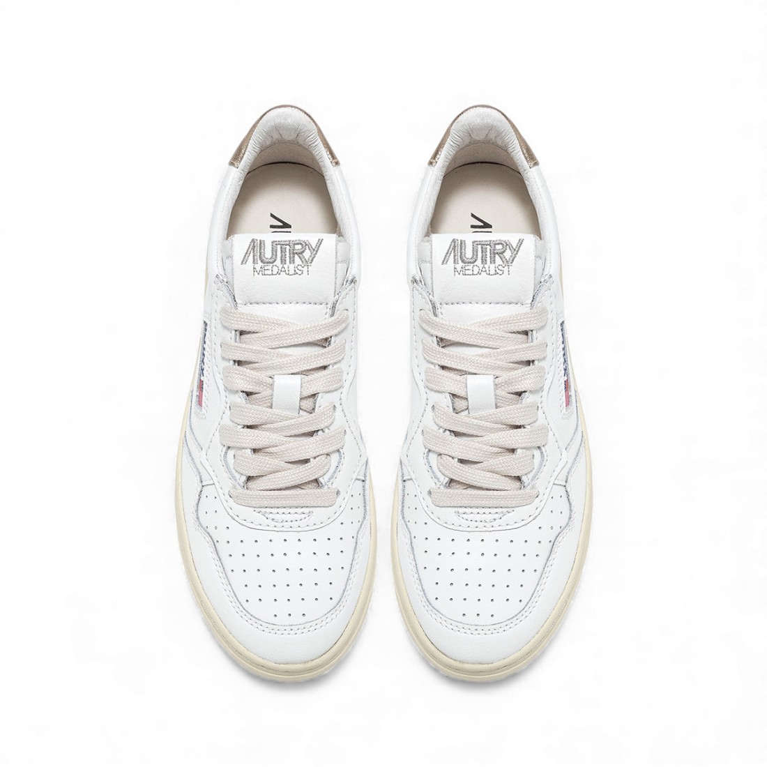 La chaussure de sport Medalist est un incontournable de votre garde-robe. Inspirée du tennis des années 1980, elle séduit par son cuir blanc souple et le détail du talon en or métallisé qui illumine le design. En plus du style, elle offre un confort absolu : bout perforé respirant, doublure en coton éponge et semelle intérieure surélevée de 2 cm pour un maintien optimal. Parfaites pour apporter une touche dynamique-chic à vos looks quotidiens, elles vous garantissent un confort du matin au soir.