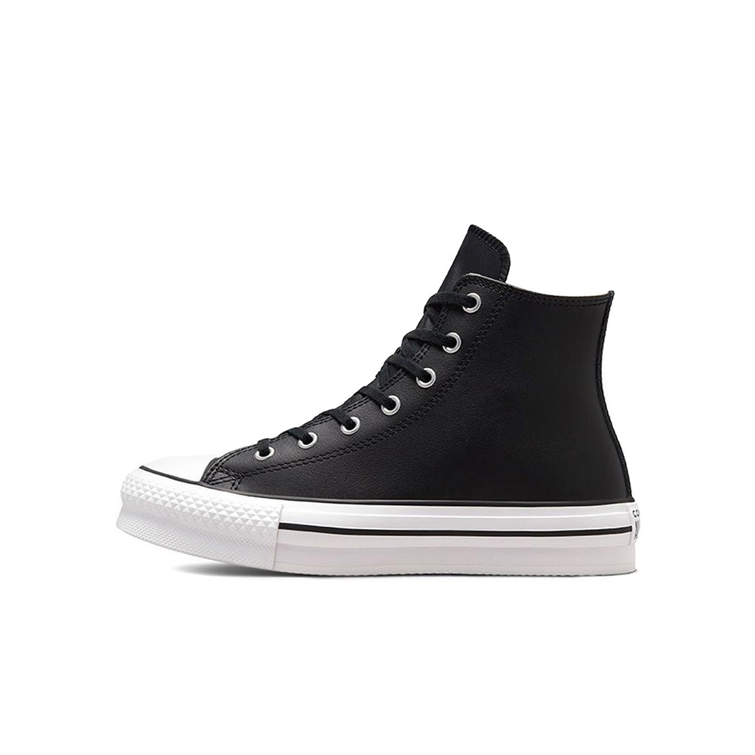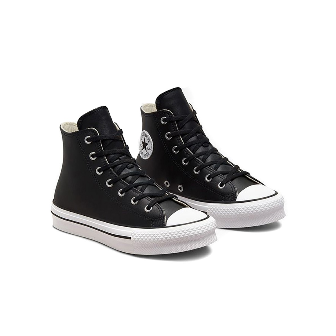 Découvrez les baskets Converse Chuck Taylor All Star Lift en cuir noir, avec embout en caoutchouc blanc et logo "Converse All Star" sur le côté. Semelle en caoutchouc durable avec le logo All Star à l'arrière. Un style intemporel et un confort quotidien pour un look décontracté et polyvalent, parfait pour compléter n'importe quelle tenue avec du caractère.