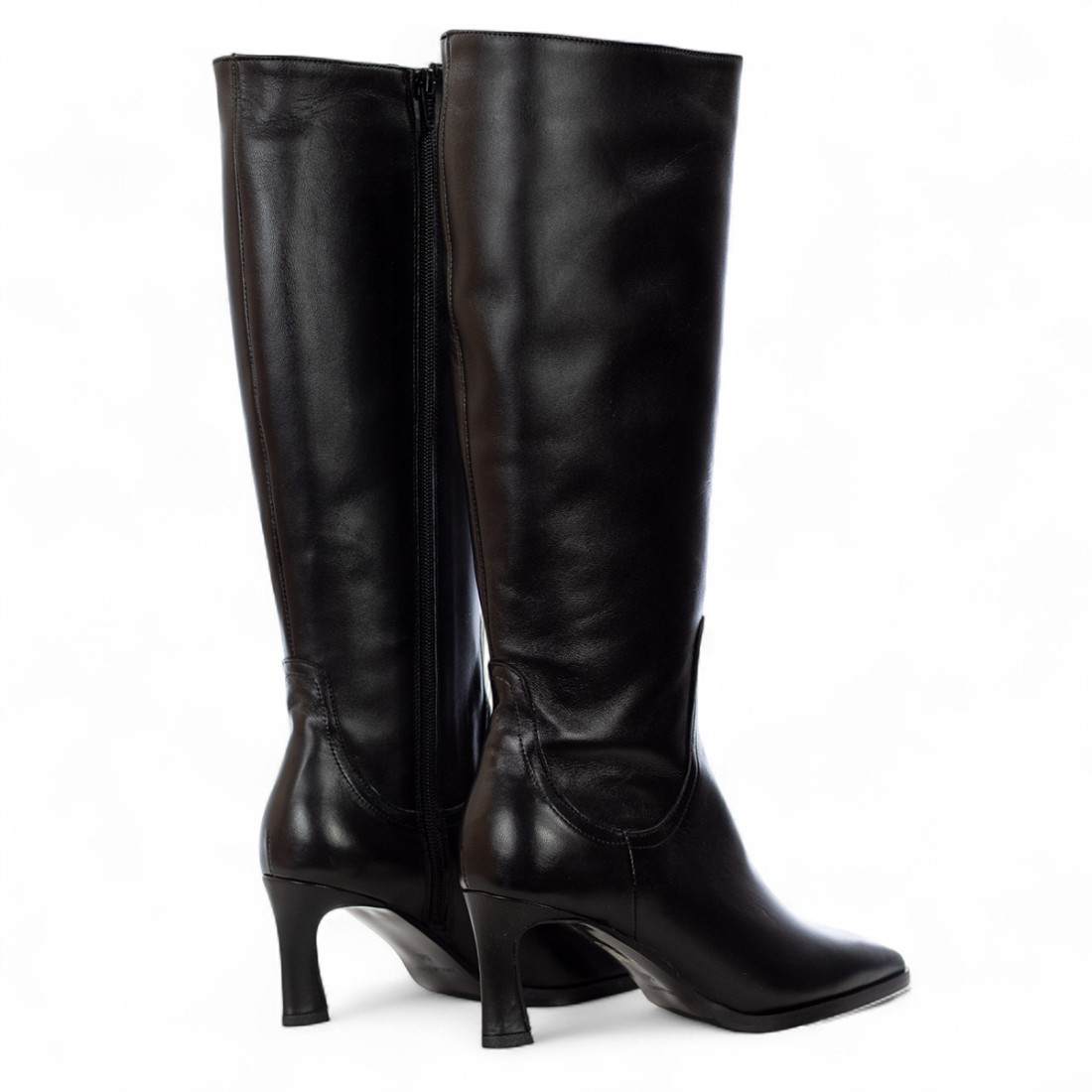 Botte ANCAMY en cuir souple noir, au design élégant et raffiné. Le talon de 75 mm affine la silhouette, la fermeture éclair latérale confortable, la doublure et la semelle intérieure en cuir garantissent confort et respirabilité. La semelle en caoutchouc assure la stabilité à chaque pas, ce qui la rend parfaite pour un look chic en toute occasion.