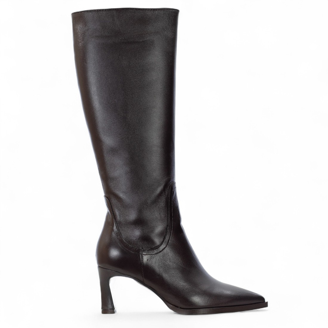 Botte ANCAMY en cuir souple marron, au design élégant et raffiné. Le talon de 75 mm affine la silhouette, la fermeture éclair latérale confortable, la doublure et la semelle intérieure en cuir garantissent confort et respirabilité. La semelle en caoutchouc assure la stabilité à chaque pas, ce qui la rend parfaite pour un look chic en toute occasion.