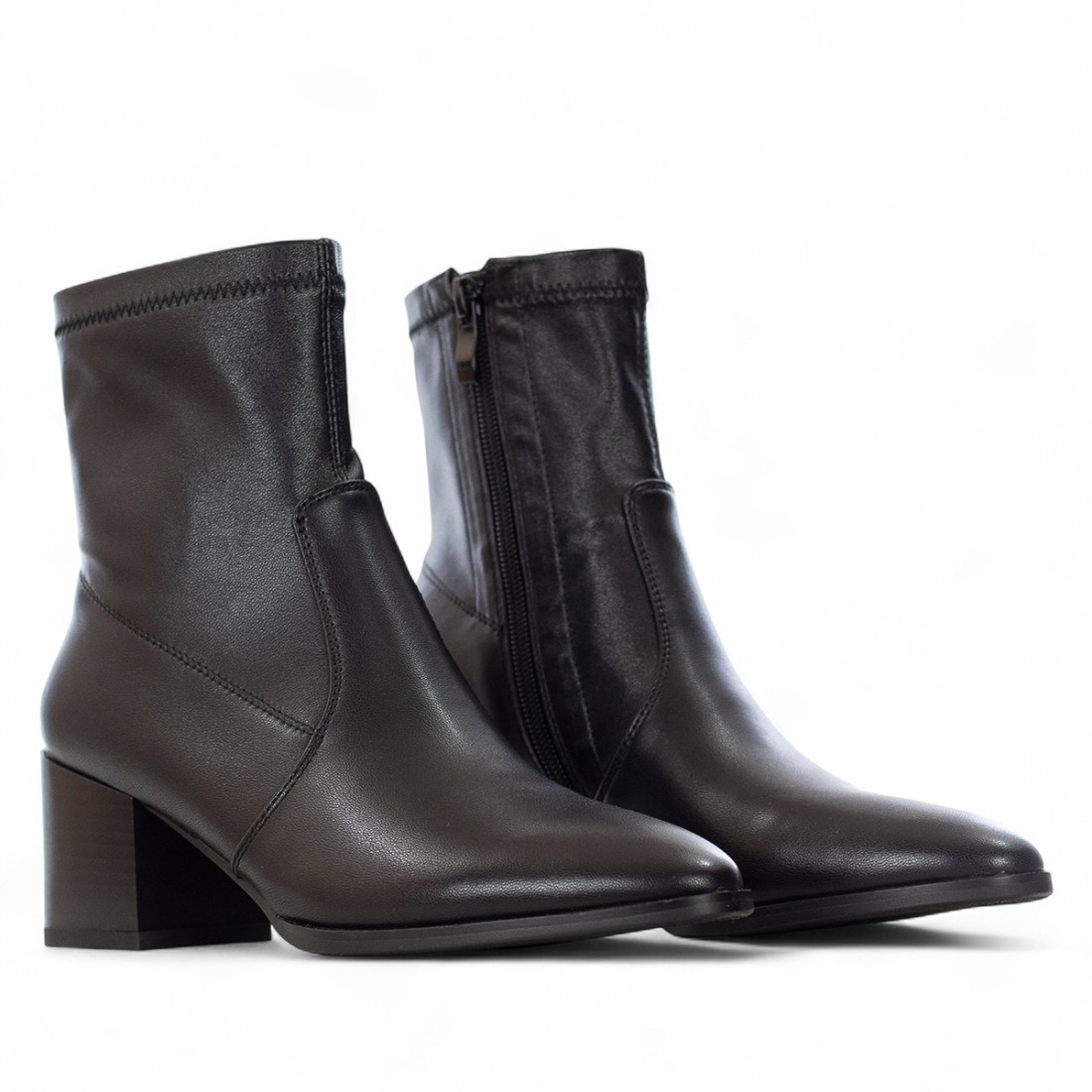 Bottine pour femme UMA PARKER en faux cuir noir, idéale pour un style moderne et original. Le talon d'environ 60 mm garantit confort et élan, tandis que le zip latéral facilite le chaussage. La doublure en similicuir et tissu offre une sensation agréable au pied. Semelle en caoutchouc durable pour une marche sûre et stable. Un modèle polyvalent, parfait pour toutes les occasions.