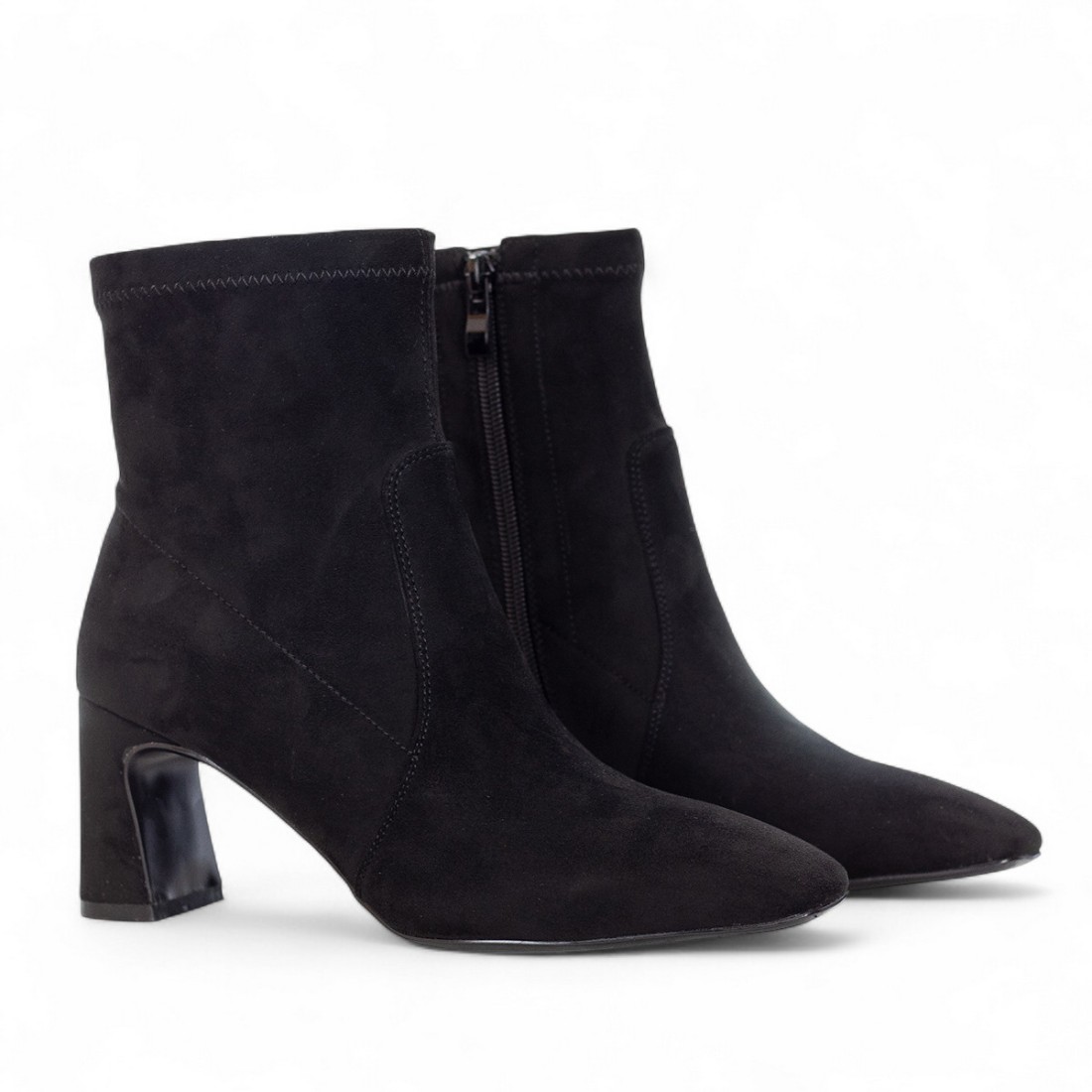 Bottines UMA PARKER en éco-daim noir souple, au design élégant et polyvalent. Le bout carré et le talon bloc couvert de 6 cm offrent confort et style pour toutes les occasions. Dotées d'une fermeture à glissière interne pratique, elles sont dotées d'une doublure et d'une semelle intérieure en synthétique et d'une semelle en caoutchouc antidérapante. Idéales pour compléter des looks décontractés ou raffinés avec une touche de classe.