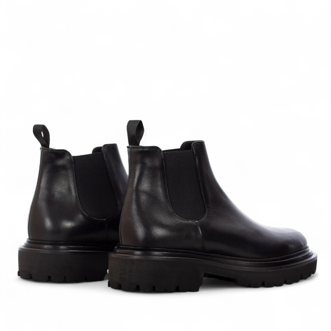 Beatles Marechiaro en cuir noir avec une finition lisse, caractérisé par un design élégant et raffiné. La doublure et la semelle intérieure sont entièrement en cuir pour un confort supérieur. Le détail en tissu élastique sur les côtés assure un ajustement pratique et confortable. Un talon de 35 mm et une semelle en caoutchouc durable complètent ce modèle au charme intemporel.