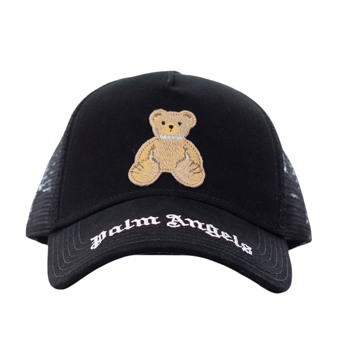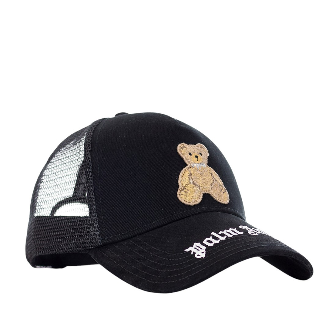 Casquette de baseball Palm Angels en coton noir avec dos en filet assorti pour une meilleure respirabilité. Le logo de l'ours en relief et le lettrage brodé contrasté, détail emblématique de la marque, figurent sur le devant de la casquette. Fermeture arrière réglable avec logo en plastique pour un ajustement personnalisé. Référence : PMLB068S26FAB0046060