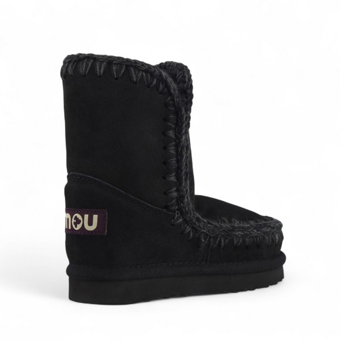Bottine Eskimo Kid MOU en daim noir avec des coutures au crochet faites à la main. La doublure chaude en peau de mouton double face assure confort et douceur, tandis que le logo Mou cousu à l'arrière rehausse le design artisanal. Semelle en caoutchouc durable pour un look authentique et durable, idéal pour un style décontracté et raffiné en toute saison.Notre service client est disponible du lundi au samedi de 10h00 à 19h30